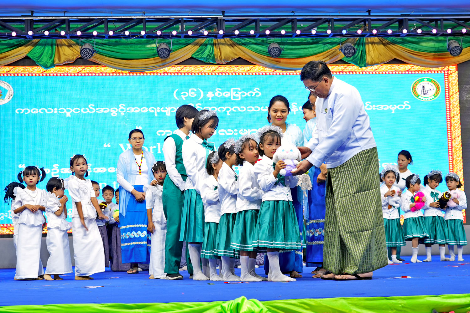 ဆက်လက်၍ (၃၆)နှစ်မြောက် ကလေးသူငယ်အခွင့်အရေးများဆိုင်ရာ ကုလသမဂ္ဂကွန်ဗင်းရှင်း ကမ္ဘာ့ကလေးများနေ့ အထိမ်းအမှတ် မှတ်တမ်းတင်ဗွီဒီယိုပြသခဲ့ပြီး၊ ဥယျာဉ်မှူး ပုဂလိက မူလတန်း ကြိုကျောင်းမှ ကလေးငယ်လေးများမှ “ We are World ” သီချင်းဖြင့်လည်းကောင်း၊ တော်ဝင်ပန်း မူလတန်းကြိုကျောင်းမှ ရင်သွေးငယ်လေးများမှ “ လောကအားမာန်” တေးသီချင်း အကဖြင့်လည်း ကောင်း၊ Epic Horizons မူလတန်းကြိုကျောင်းမှ ရင်သွေးငယ်လေးများမှ “ သားတို့သမီးတို့ အခွင့်အရေး ”သံချပ်တို့ဖြင့်လည်းကောင်း ကပြဖျော်ဖြေတင်ဆက်ခဲ့ကြသည်။