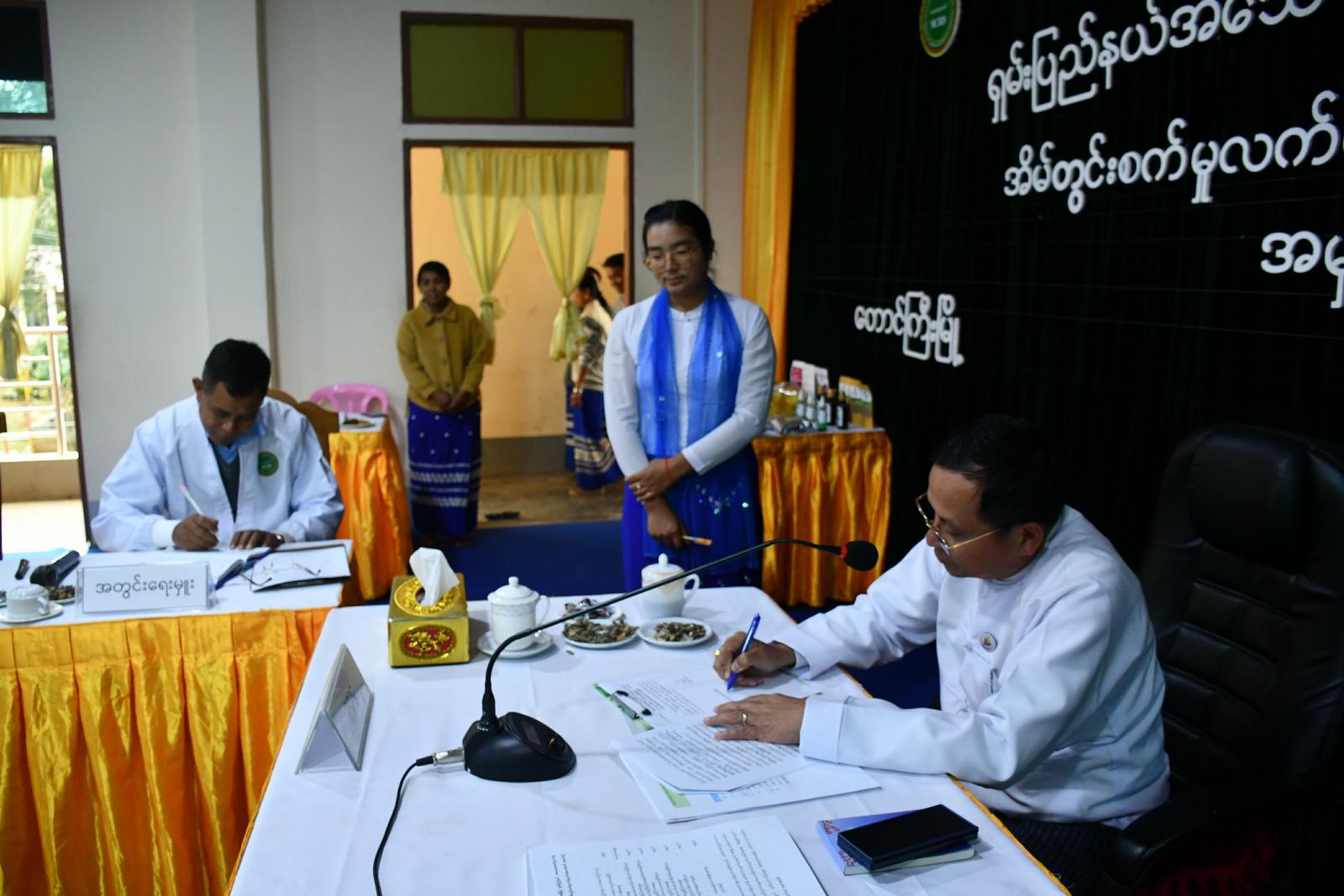 ထို့နောက် ရှမ်းပြည်နယ်၊ အသေးစားစက်မှုလက်မှုလုပ်ငန်းဦးစီးဌာန၊ ပြည်နယ်ဦးစီးမှူး ဦးစိုးနိုင်ထူးက လုပ်ငန်းမှတ်ပုံတင်များထုတ်ပေးမှုနှင့်ပတ်သက်၍ ပါဝါပွိုင့်ဖြင့် ရှင်းလင်းတင်ပြရာ ပြည်နယ်ဝန်ကြီးနှင့်ကော်မတီဝင်များက ဝိုင်းဝန်းဆွေးနွေးကြပြီး လုပ်ငန်းမှတ်ပုံတင်များကို ဥပဒေနှင့်အညီ စိစစ်ထုတ်ပေးခဲ့ကြောင်း သိရသည်။