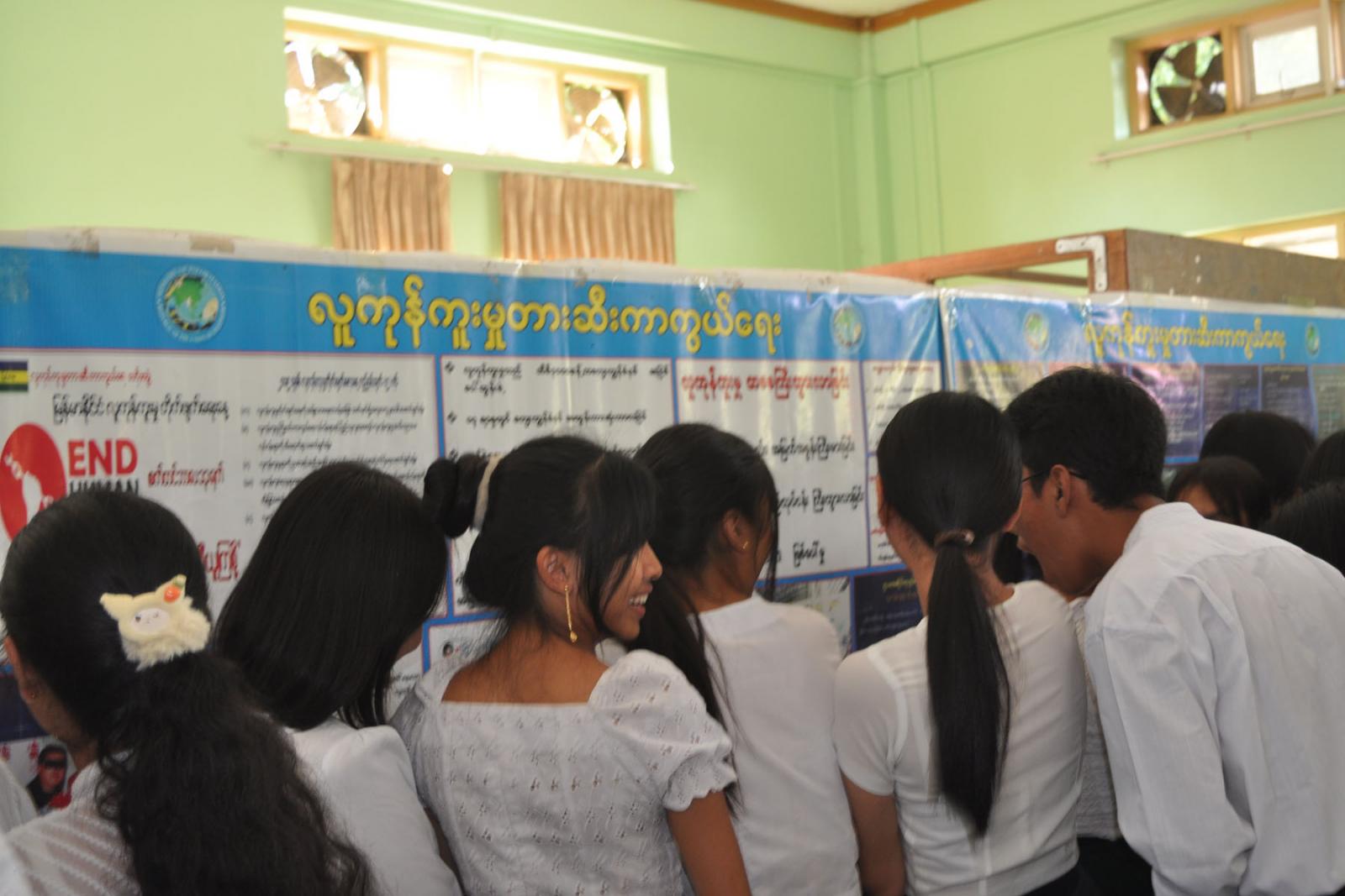 ဆွေးနွေးပွဲတွင် ဦးဆောင်ဆွေးနွေးသည့် ကျောင်းသား၊ ကျောင်းသူများအား ပြန်ကြားရေးနှင့်ပြည်သူ့ဆက်ဆံရေးဦးစီးဌာနက အမှတ်တရလက်ဆောင်များပေးအပ်ခဲ့ပြီး၊ တက်ရောက်လာ သော ကျောင်းသား၊ ကျောင်းသူများက ပြန်ကြားရေးနှင့်ပြန်သူ့ဆက်ဆံရေးဦးစီးဌာနက ခင်းကျင်းပြသထားသည့် အသိပညာပေး နံရံကပ်စာစောင်များနှင့် သုတ/ရသ စာအုပ်/ စာစောင်များကို စိတ်ပါဝင်စားစွာ ကြည့်ရှုခဲ့ကြောင်း သိရသည်။