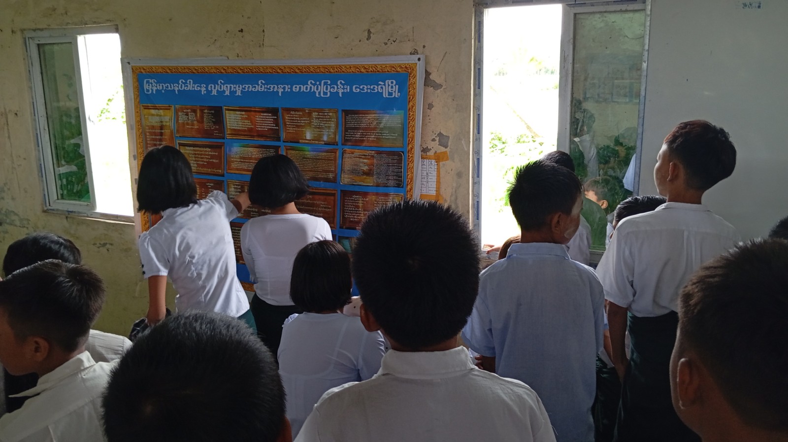 ဟောပြောပွဲအပြီးတွင် ကျောင်းသား၊ကျောင်းသူများက ပြန်ကြားရေးနှင့်ပြည်သူ့ဆက်ဆံရေးဦးစီးဌာနက ခင်းကျင်းပြသထားသော သုတ၊ရသစာအုပ်စာစောင်များနှင့် သဘာဝပတ်ဝန်းကျင်ထိန်းသိမ်းရေးအသိပညာပေး နံရံကပ်စာစောင်များကို ကြည့်ရှု့လေ့လာခဲ့ကြောင်း သိရသည်။
