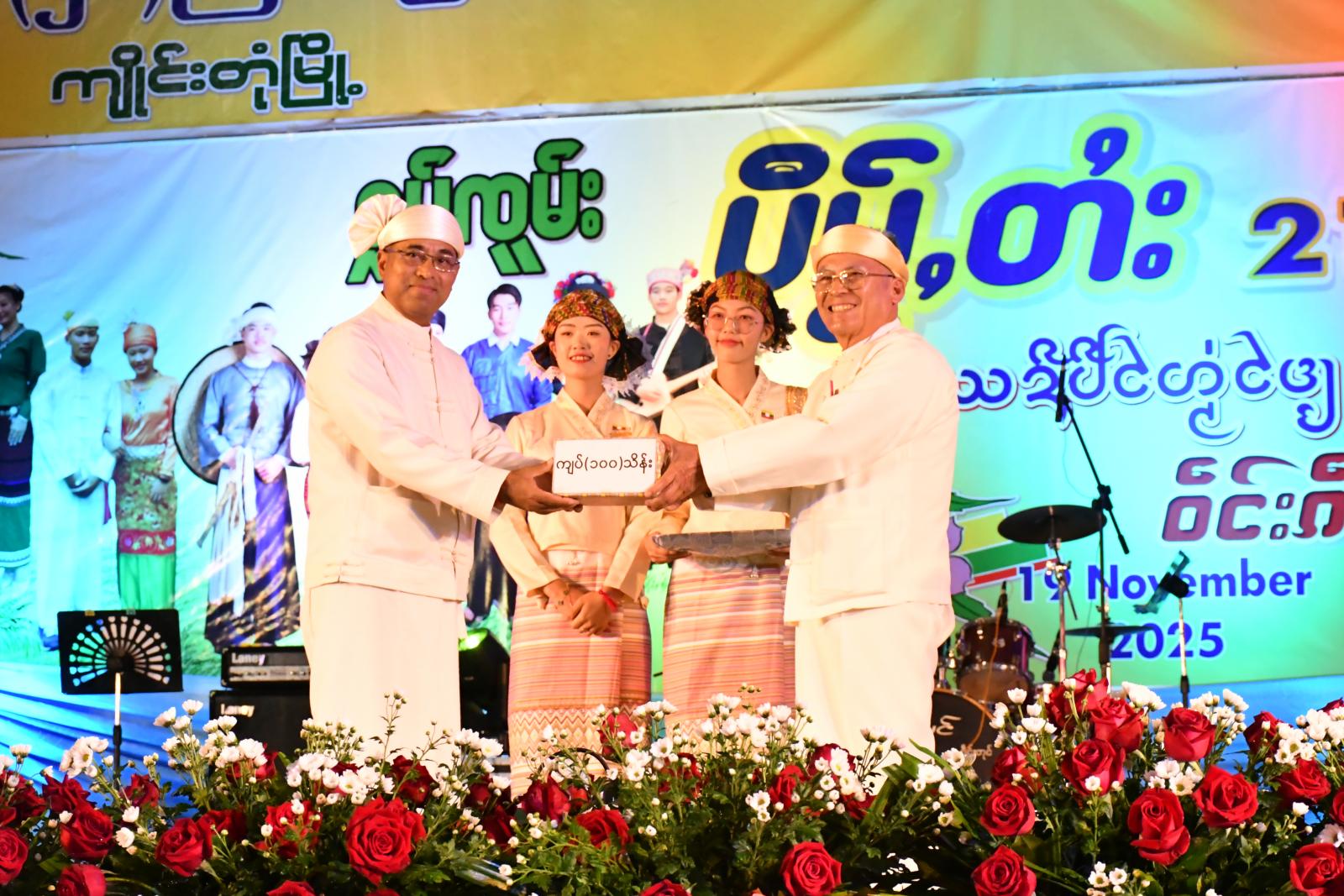 ရှမ်းပြည်နယ်(အရှေ့ပိုင်း)၊ ကျိုင်းတုံမြို့၌ ၂၀၂၅ ခုနှစ် ရှမ်းတိုင်းရင်းသားများနှစ်သစ်ကူးပွဲတော်အထိမ်းအမှတ် မိတ်ဆုံစားပွဲကို နိုဝင်ဘာ ၁၉ ရက်က ခရိုင်အားကစားကွင်းတွင် ကျင်းပရာ ရှမ်းပြည်နယ်ဝန်ကြီးချုပ် ဦးအောင်အောင်၊ တြိဂံဒေသတိုင်းစစ်ဌာနချုပ်တိုင်းမှူး ဗိုလ်ချုပ်စိုးလှိုင်နှင့်တာဝန်ရှိသူများက ရှမ်းနှစ်သစ်ကူးပွဲတော်အား ဖဲကြိုးဖြတ်ဖွင့်လှစ်ပေးပြီး ရှမ်းတိုင်းရင်းသားရိုရာပြခန်းများအား လှည့်လည်ကြည့်ရှုအားပေးသည်။