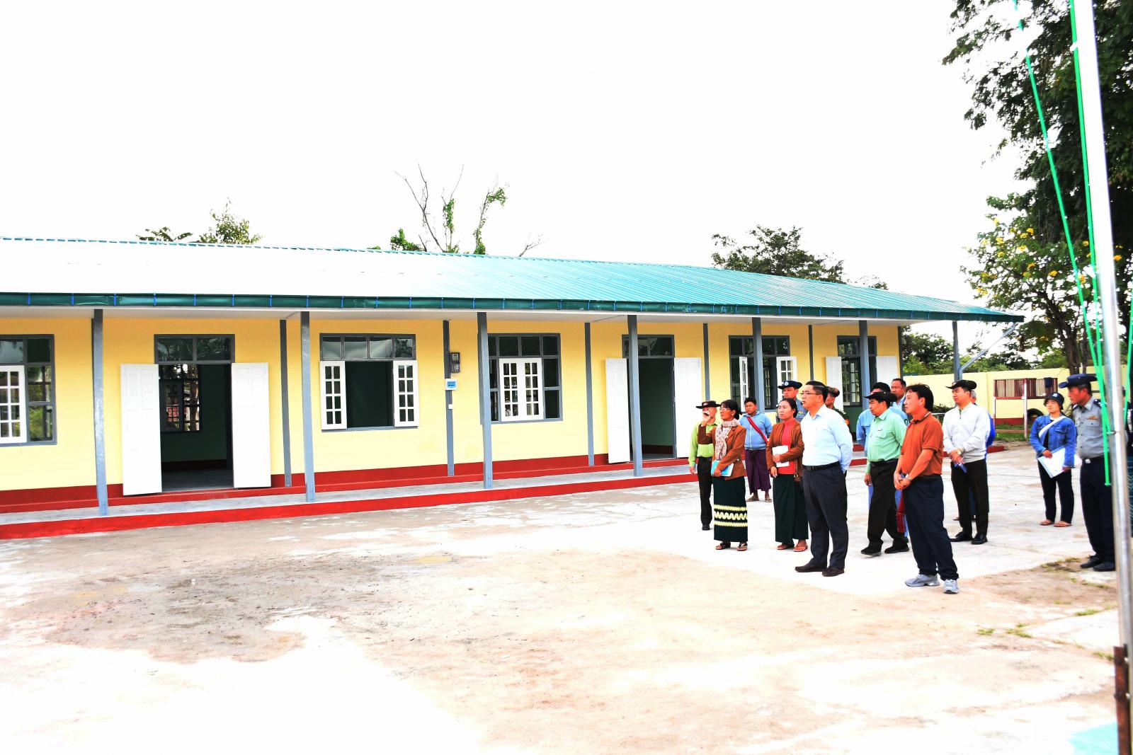 ထို့နောက် ပြည်နယ်ဝန်ကြီးချုပ်နှင့် တာဝန်ရှိသူများသည် အခြေခံပညာအလယ်တန်း လေ့ကျင့်ရေးကျောင်း(ထေးသမ)သို့ ရောက်ရှိပြီး ကျောင်းဝင်းအတွင်း ၈၀x၃၀ ပေ အုတ်ညှပ်တစ်ထပ် ကျောင်းဆောင်သစ်ဆောက်လုပ်ပြီးစီးမှုအား ကြည့်ရှုစစ်ဆေးရာ ပြည်နယ်ပညာရေးမှူးနှင့် တာဝန်ရှိသူများကရှင်းလင်းတင်ပြကြသည်။ ပြည်နယ်ဝန်ကြီးချုပ်က အခြားကျောင်းများတွင် ယာယီတက်ရောက်နေသည့် ကျောင်းသားကျောင်းသူများအား မိမိတို့ ရပ်ရွာရှိ ကျောင်းများတွင် ပြန်လည်တက်ရောက်နိုင်အောင်ဆောင်ရွက်ပေးရန်နှင့် လိုအပ်သည့် သင်ထောက်ကူ ပစ္စည်းများနှင့် ကျောင်းသုံးပရိဘောဂများ ပြည့်စုံအောင် စီမံပေးရန် တာဝန်ရှိသူများအား မှာကြားခဲ့သည်။