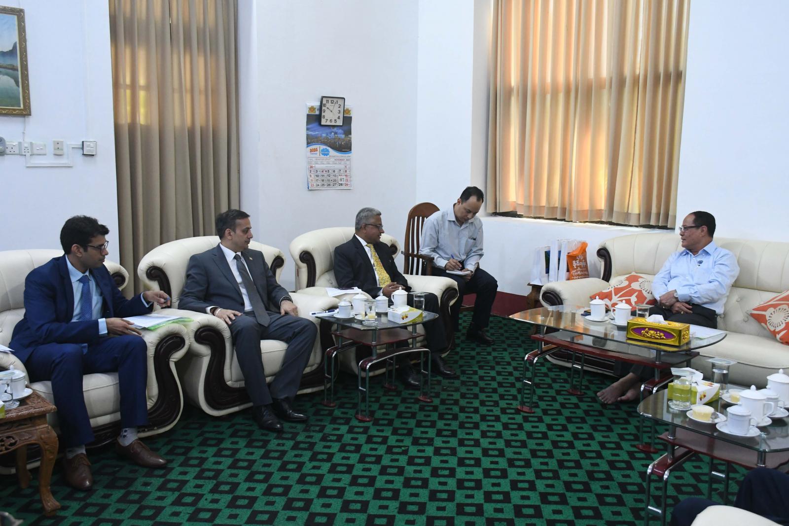 ကရင်ပြည်နယ်အစိုးရအဖွဲ့၊ ပြည်နယ်ဝန်ကြီးချုပ်ဦးစောမြင့်ဦးသည် ပြည်နယ်အစိုးရအဖွဲ့ဝင်များ၊ တာဝန်ရှိသူ များနှင့်အတူ မြန်မာနိုင်ငံဆိုင်ရာအိန္ဒိယသံအမတ်ကြီး H.E Mr.Abhay Thakur နှင့်အဖွဲ့အား နိုဝင်ဘာလ ၂၁ ရက်နေ့ နံနက် ၁၀ နာရီက ပြည်နယ်အစိုးရအဖွဲ့ရုံး ဧည့်ခန်းမ(၂)၌ လက်ခံတွေ့ဆုံသည်။
