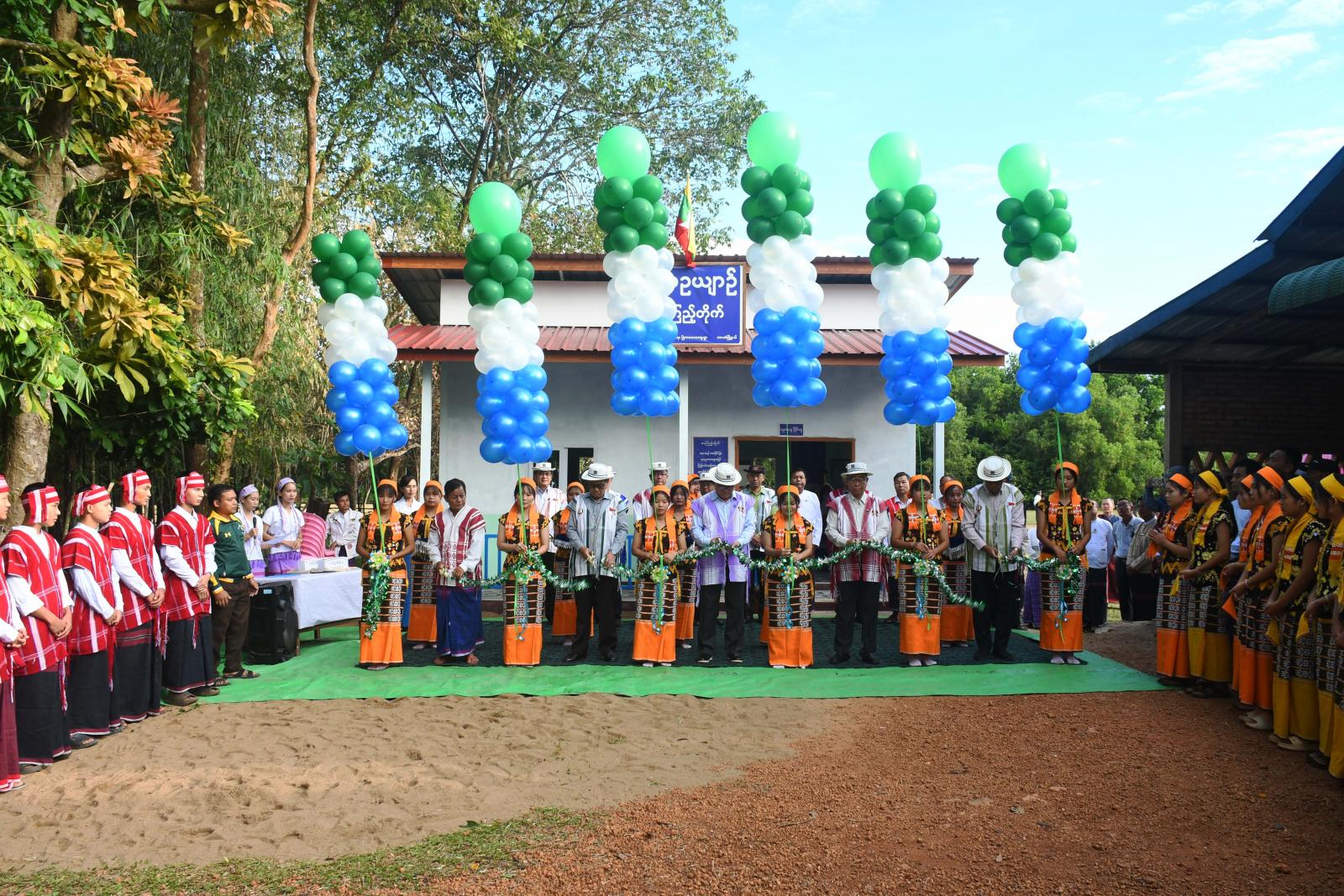 အဆိုပါစာကြည့်တိုက်ကို ပြည်နယ်အစိုးရအဖွဲ့၏ မတည်ချီးမြှင့်ငွေကျပ်သိန်း(၂၀၀) ပြည်သူလူထုထည့်ဝင်ငွေကျပ် ၄၇၈၇၀၀ဝ စုစုပေါင်းငွေကျပ် ၂၄၇၈၇၀၀ဝ ဖြင့် ဆောက် လုပ်ဖွင့်လှစ်ခဲ့ခြင်းဖြစ်ပြီး ပြည်နယ်ဝန်ကြီးချုပ်ဦးစောမြင့်ဦး၊ ပြည်နယ်တရားလွှတ်တော် တရားသူကြီးချုပ် ဦးညွန့်လင်း၊ ပြည်နယ်အစိုးရအဖွဲ့ဝင်များနှင့်တာဝန်ရှိသူများက ဖဲကြိုးဖြတ်ဖွင့်လှစ်ကာ ယဉ်ကျေးမှုအဖွဲ့များကို ဂုဏ်ပြုဆုများပေးအပ်ချီးမြှင့်သည်။