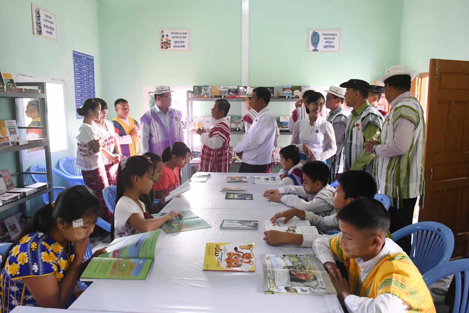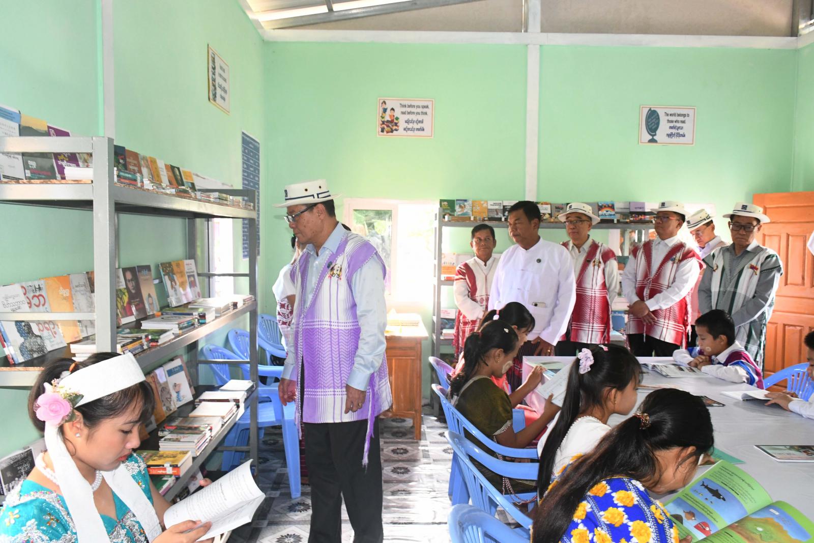ထို့နောက် ပြည်နယ်ဝန်ကြီးချုပ်နှင့်တာဝန်ရှိသူများသည် စာကြည့်တိုက်အဆောက်အဦအား အမွှေးနံ့သာရည်များ ပက်ဖျန်းပေးကြပြီး စာကြည့်တိုက်အတွင်း သုတ၊ ရသစာအုပ်စာစောင်များအား ပညာရပ်အလိုက်ခင်းကျင်းထားရှိမှု၊ ကျောင်းသား၊ ကျောင်းသူများနှင့်ဒေသခံများ၏ စာပေလာရောက်လေ့လာဖတ်ရှုနေမှုများကို ကြည့်ရှုအားပေး၍ တာဝန်ရှိသူများအား လိုအပ်သည်များမှာကြားသည်။