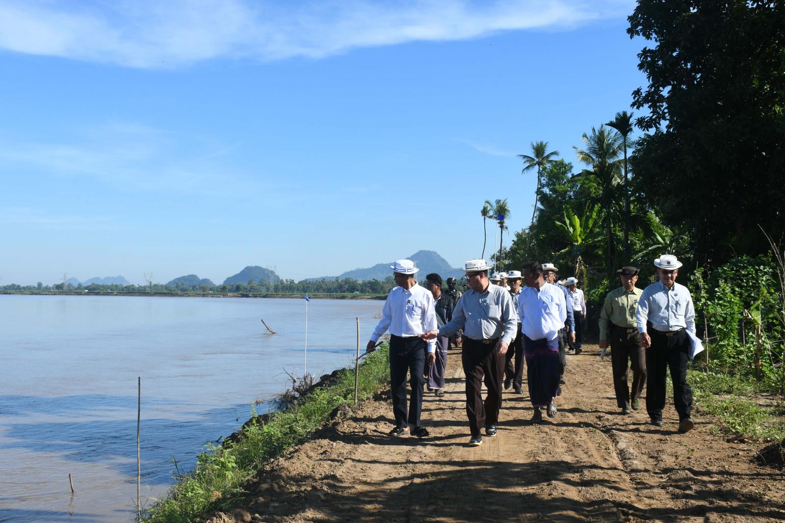 အလားတူ ကရင်ပြည်နယ်အတွင်းယမန်နှစ်မိုးရာသီကမိုးသည်းထန်စွာရွာသွန်းပြီး သံလွင်မြစ်ရေ နှစ်ကြိမ်တိုင်တိုင် ထူးကဲစံချိန်တင်မြင့်တက်မှုကြောင့် ကော့လှိုက်ကျေးရွာတွင် မြစ်ကမ်းပြိုကျမှုများ ဖြစ်ပွားခဲ့ပြီး ရေအရင်းအမြစ်နှင့်မြစ် ချောင်းများဖွံ့ဖြိုးတိုးတက်ရေးဦးစီးဌာန၊ ဒေသ(၁၁)၊ ကရင်ပြည်နယ်ဦးစီးမှူးရုံးမှ ကမ်းပြိုကာကွယ်ရေးလုပ်ငန်းများကို ဆောင်ရွက်လျက်ရှိရာ နိုဝင်ဘာလ ၂၂ ရက်နေ့ နံနက်ပိုင်းက ပြည်နယ်ဝန်ကြီးချုပ်ဦးစောမြင့်ဦး နှင့်တာဝန်ရှိသူများ ကွင်းဆင်း ကြည့်ရှုစစ် ဆေးခဲ့ကြသည်။