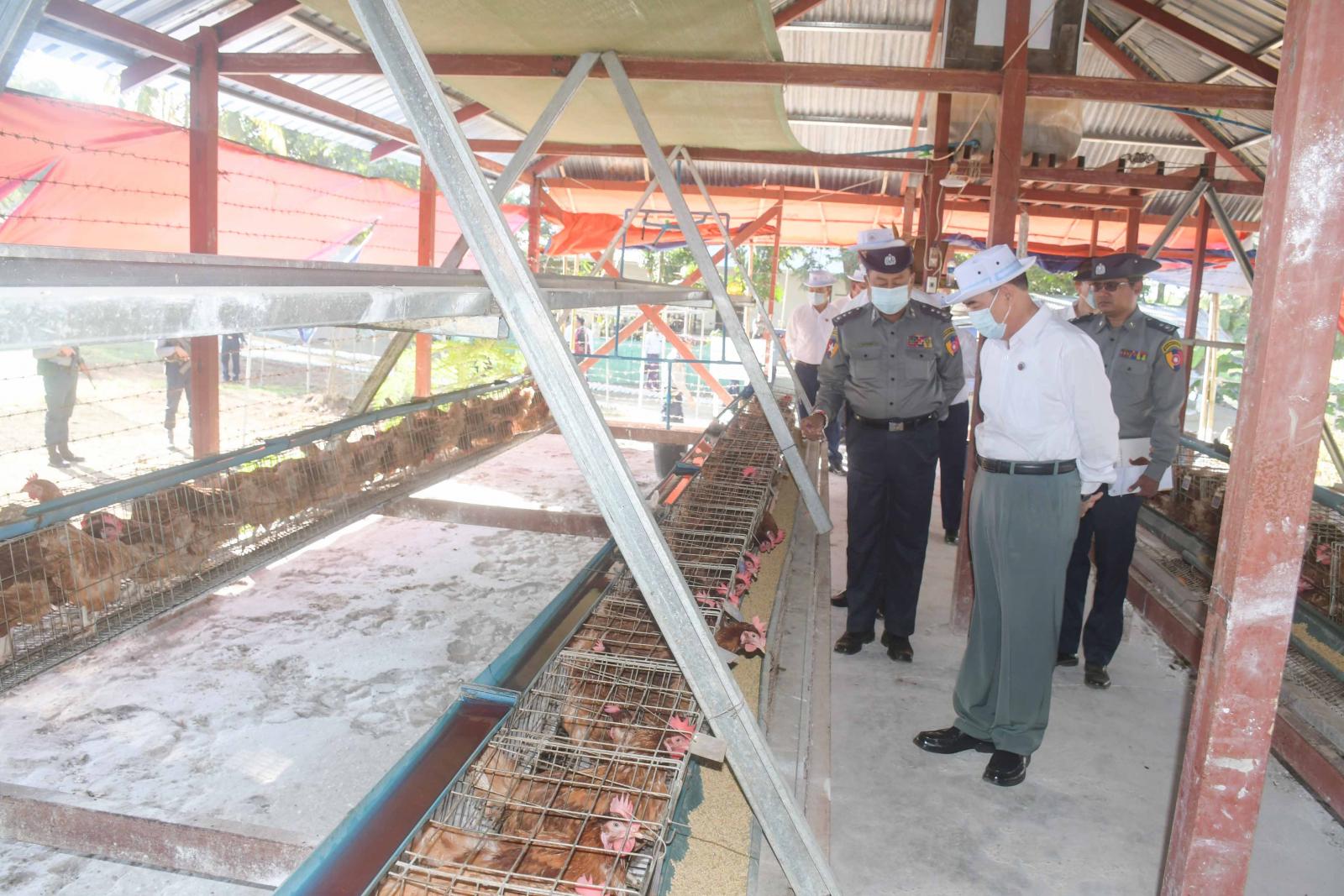 ထို့နောက် ပြည်နယ်ဝန်ကြီးချုပ်နှင့်အဖွဲ့သည် ရခိုင်ပြည်နယ်ရဲတပ်ဖွဲ့၏ ရဲမာန်ဘက်စုံ စိုက်ပျိုးရေးမွေးမြူရေးခြံသို့ လှည့်လည်ကြည့်ရှုအားပေးကြသည်။ ဦးစွာ ပြည်နယ်ဝန်ကြီးချုပ်နှင့် အဖွဲ့သည်ခြံအတွင်း ဥစားကြက်များမွေးမြူထားရှိမှုကို သွားရောက်ကြည့်ရှုအားပေးကြရာ ပြည်နယ်ရဲတပ်ဖွဲ့မှူးက ဥစားကြက်များ မွေးမြူဖြစ်ထွန်းနေမှု၊ တပ်ဖွဲ့ဝင်များ ဖြန့်ဝေပေးနေမှု၊ ဈေးကွက်အတွင်းရောင်းချနေမှု၊ တိုးချဲ့မွေးမြူသွားမည့်အခြေအနေများကို ရှင်းလင်းတင်ပြသည်။ ဆက်လက်၍ ပြည်နယ်ဝန်ကြီးချုပ်နှင့်အဖွဲ့သည် စိုက်ပျိုးရေးခြံအတွင်း ဒေသဘဲများမွေးမြူ ဖြစ်ထွန်းအောင်မြင်နေမှုကို သွားရောက်ကြည့်ရှုကြသည်။