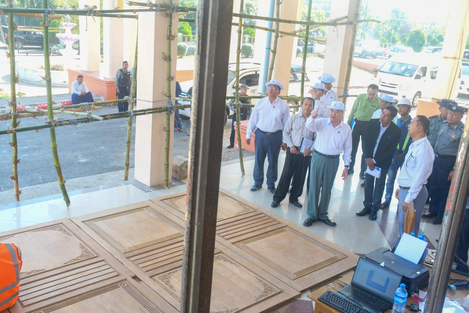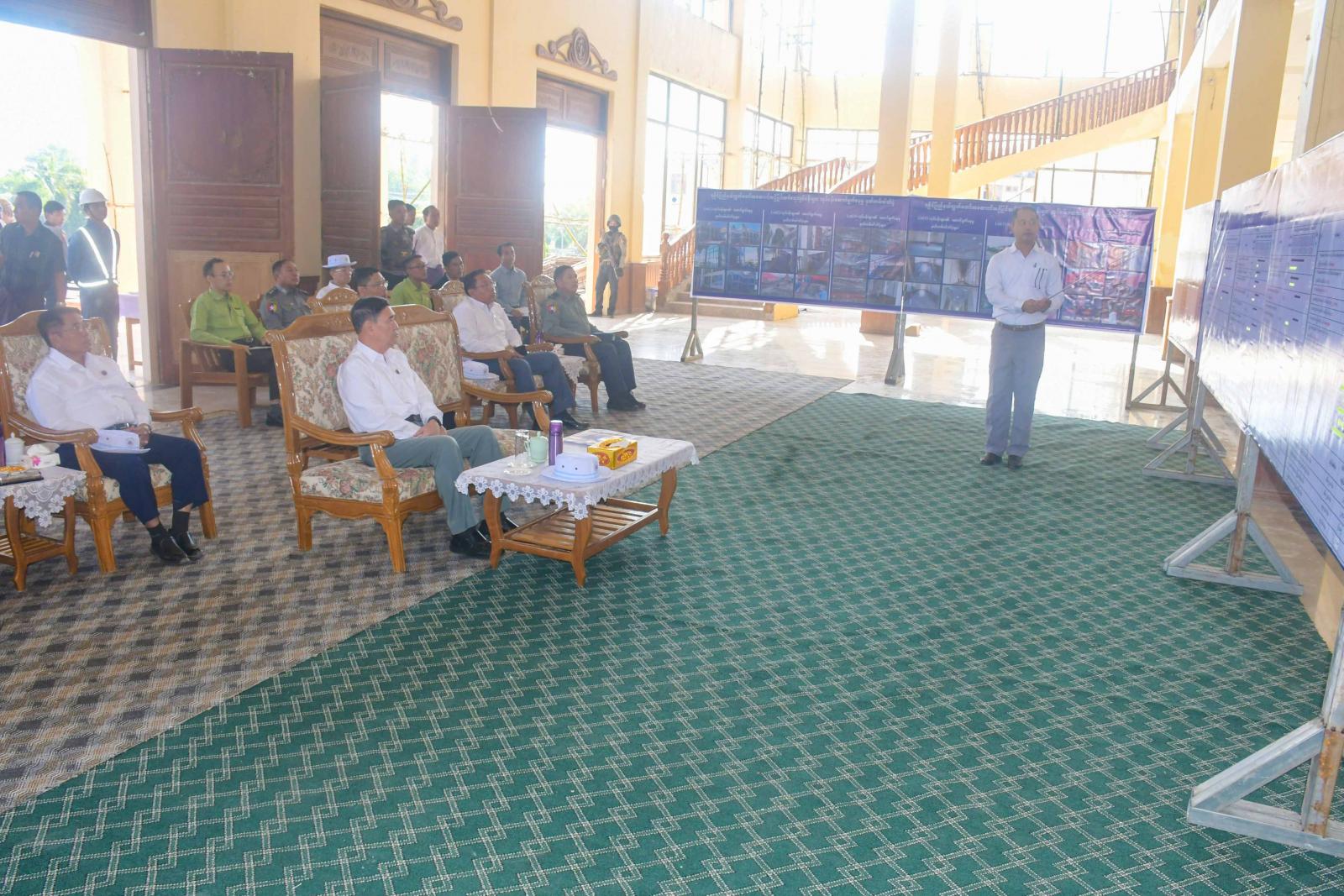 ဦးစွာ ပြည်နယ်ဝန်ကြီးချုပ်နှင့်အဖွဲ့သည် ရခိုင်ပြည်နယ်လွှတ်တော် အဆောက်အဦအား အကြီးစားပြုပြင်နေမှု သွားရောက်ကြည့်ရှုစစ်ဆေးကြရာ ရခိုင်ပြည်နယ်လွှတ်တော်ရုံး ဒုတိယညွှန်ကြားရေးမှူးချုပ်က ရခိုင်ပြည်နယ်လွှတ်တော်အဆောက်အဦအား အကြီးစားပြုပြင်နေမှု၊ ပြီးစီးနေမှုနှင့် ဆက်လက်ဆောင်ရွက်နေမှုများနှင့် ပတ်သက်၍ ရှင်းလင်းတင်ပြသည်။