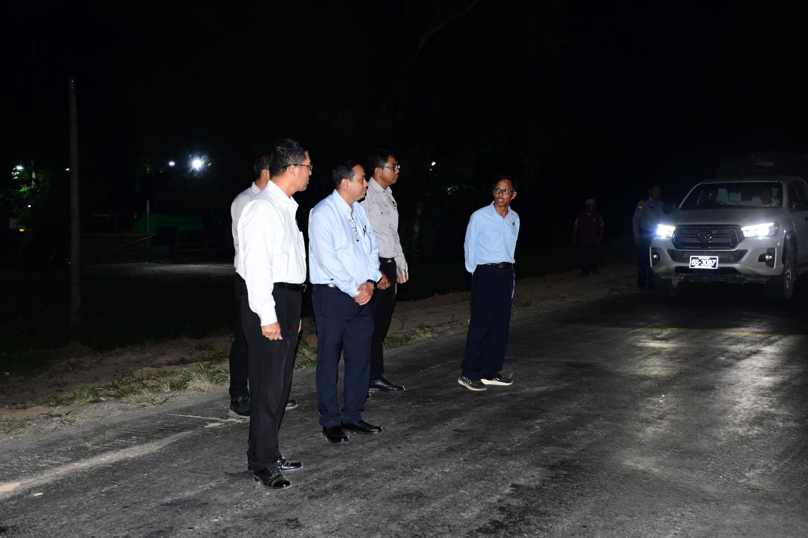 ၂၀၂၅- ၂၀၂၆ဘဏ္ဍာရေးနှစ်၊ ရန်ကုန်- ပုသိမ်လမ်းပိုင်း အဆင့်မြှင့်တင် ဆောင်ရွက်ခြင်းနှင့် ပြုပြင်ထိန်းသိမ်းခြင်းလုပ်ငန်းများကို လမ်းဦးစီးဌာနမှ လမ်းလုပ်သားများဖြင့် နေ့ဆိုင်း၊ ညဆိုင်းခွဲ၍ အင်တိုက်အားဆောင်ရွက်လျက်ရှိရာ ယမန်နေ့ညပိုင်းတွင် ရန်ကုန်-ပုသိမ်လမ်း မိုင် ၄၄/၃ တွင် ကွန်ကရစ်လမ်း တည်ဆောက်ရန် မြေသားတာဘောင်ပြုပြင်ခြင်းလုပ်ငန်း ဆောင်ရွက်ခြင်းလုပ်ငန်းကို ညဆိုင်းခွဲ၍ ဆောင်ရွက်နေမှုများကို တိုင်းဒေသကြီးဝန်ကြီးချုပ် ဦးတင်မောင်ဝင်းသည် တာဝန်ရှိသူများနှင့်အတူ သွားရောက်ကြည့်ရှုစစ်ဆေးရာ တိုင်းဒေသကြီးလမ်းဦးစီးဌာန၊ ညွှန်ကြားရေးမှူး ( မြို့ပြ)က လုပ်ငန်းဆောင်ရွက်မှုများ ရှင်းလင်းတင်ပြမှုအပေါ် တိုင်းဒေသကြီးဝန်ကြီးချုပ်က လမ်းအရည်အသွေးပြည့်မီရေး၊ သတ်မှတ်ကာလအတွင်းပြီးစီးစေရေး၊ ယာဉ်အန္တရာယ်၊ လမ်းအန္တရာယ်ကင်းရှင်းရေးတို့ကို အလေးထားဆောင်ရွက်ရန် မှာကြားခဲ့သည်။