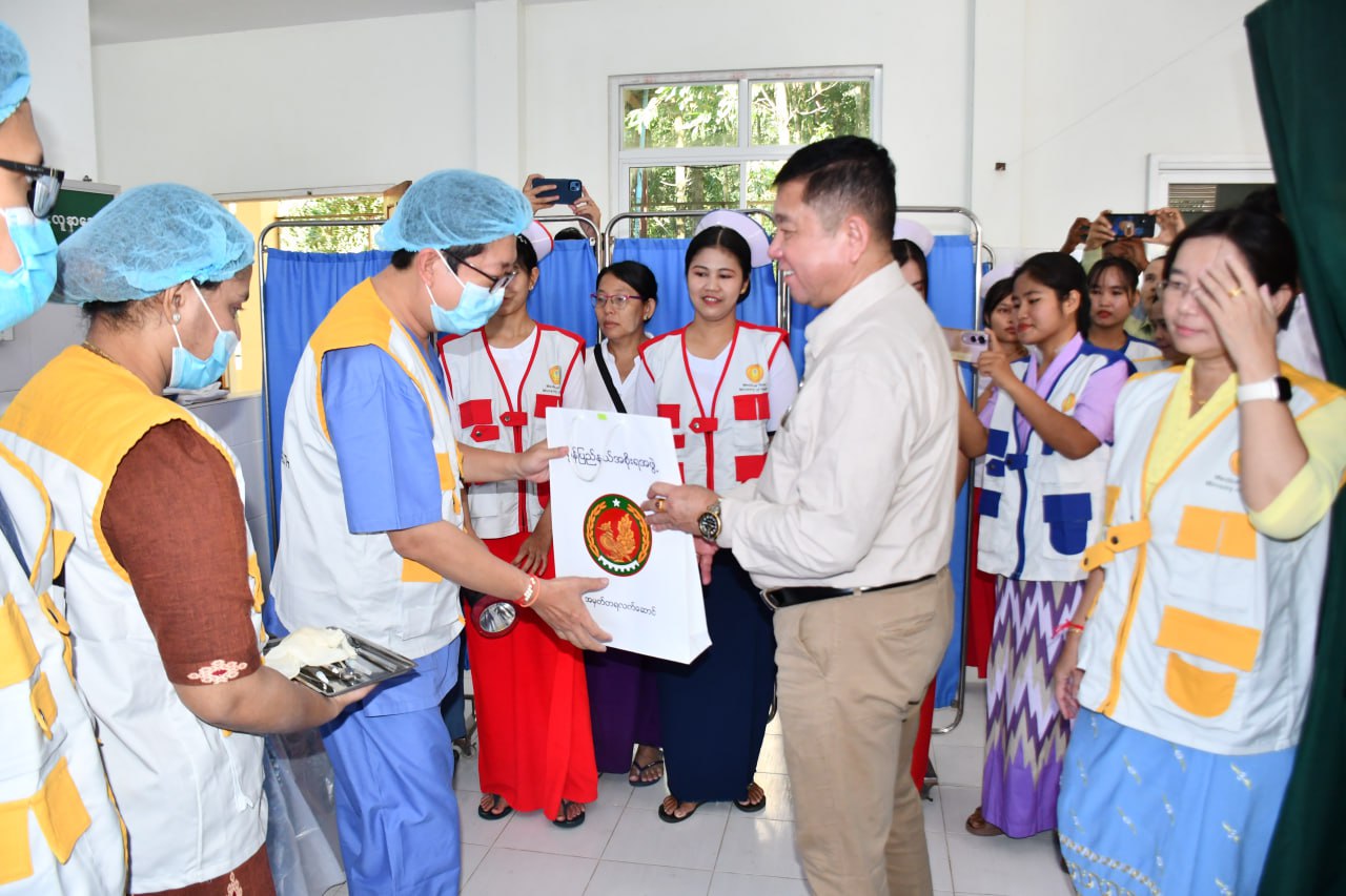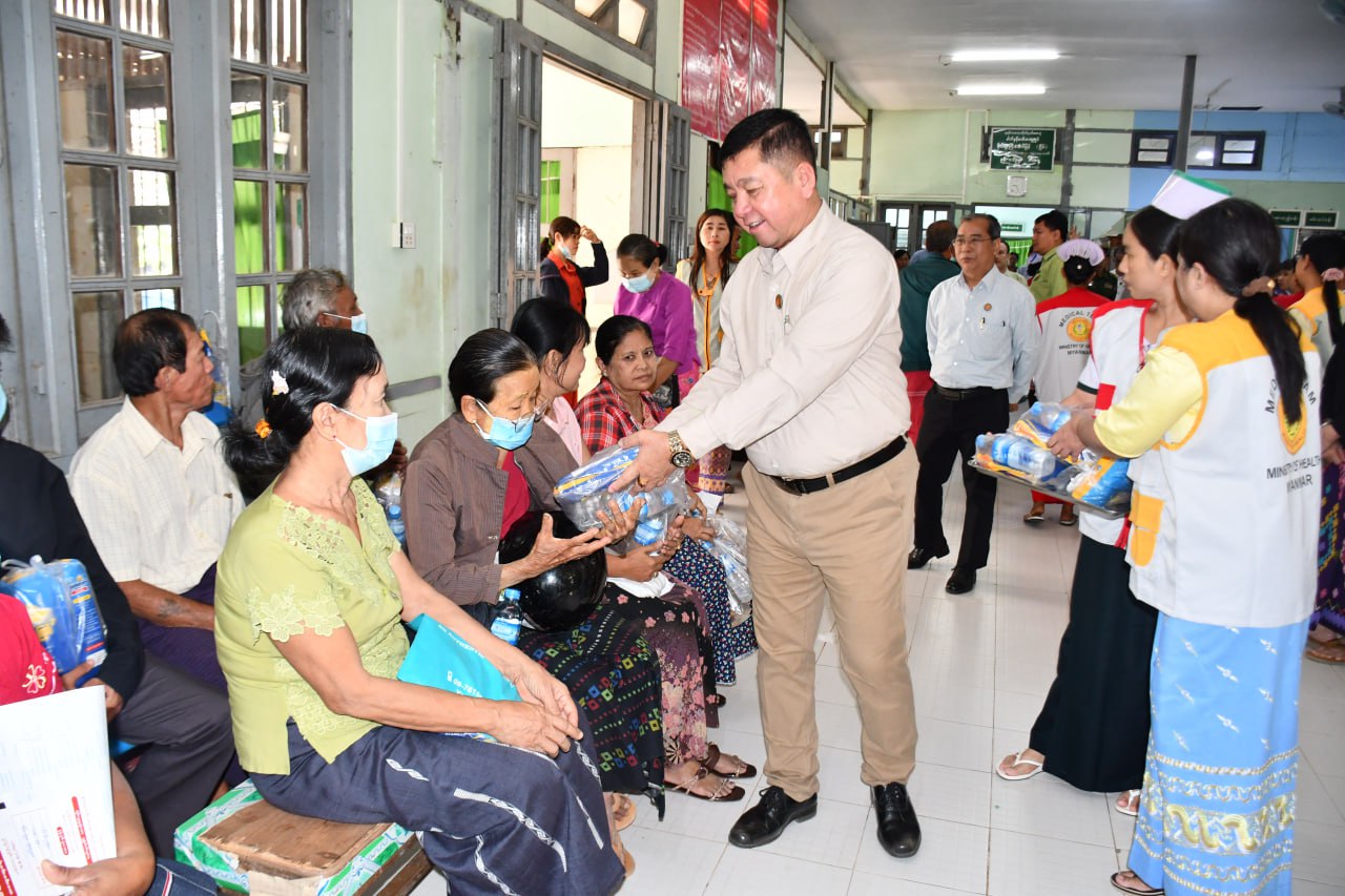 ထို့နောက် ပြည်နယ်ဝန်ကြီးချုပ်နှင့် တာဝန်ရှိသူများက ကျန်းမာရေးစောင့်ရှောက်ကုသမှုလာရောက်ခံယူသူများအား အာဟာရမုန့်၊ စားစရာများ၊ ရေသန့်ဗူးများအား အခမဲ့ဝေငှပေးခဲ့ပြီး ရင်းရင်းနှီးနှီး လိုက်လံအားပေးနှုတ်ဆက်ခဲ့သည်။