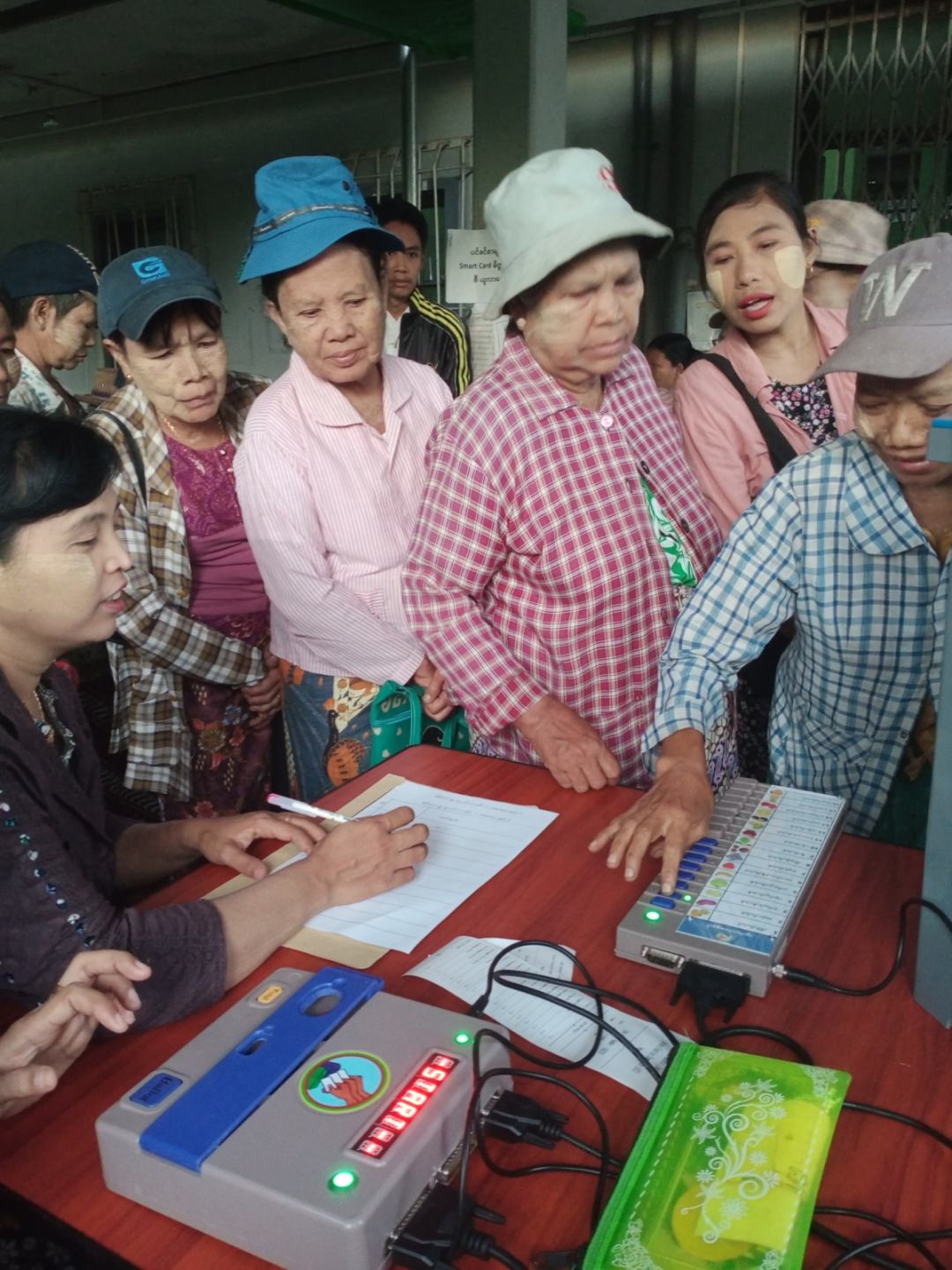မြန်မာအီလက်ထရောနစ်မဲပေးစက် (MEVM) ဖြင့် မဲပေးတတ်စေရန် ခရိုင်/မြို့နယ်ရွေးကောက်ပွဲကော်မရှင်အဖွဲ့၀င်များက မြန်မာအီလက်ထရောနစ်မဲပေးစက်ဆိုင်ရာသိမှတ်ဖွယ်ရာများနှင့် အသုံးပြုနည်းများကို ရှင်းလင်းပြောကြားခဲ့ရာ ပင်စင်ထုတ်ယူရန်လာရောက်သည့် နိုင်ငံဝန်ထမ်းအငြိမ်းစားများက သိရှိလိုသည်များကိုမေးမြန်းပြီး မဲပေးစက်ဖြင့် တစ်ဦးချင်းလက်တွေ့စမ်းသပ်မဲပေးခဲ့ကြကြောင်း သိရသည်။