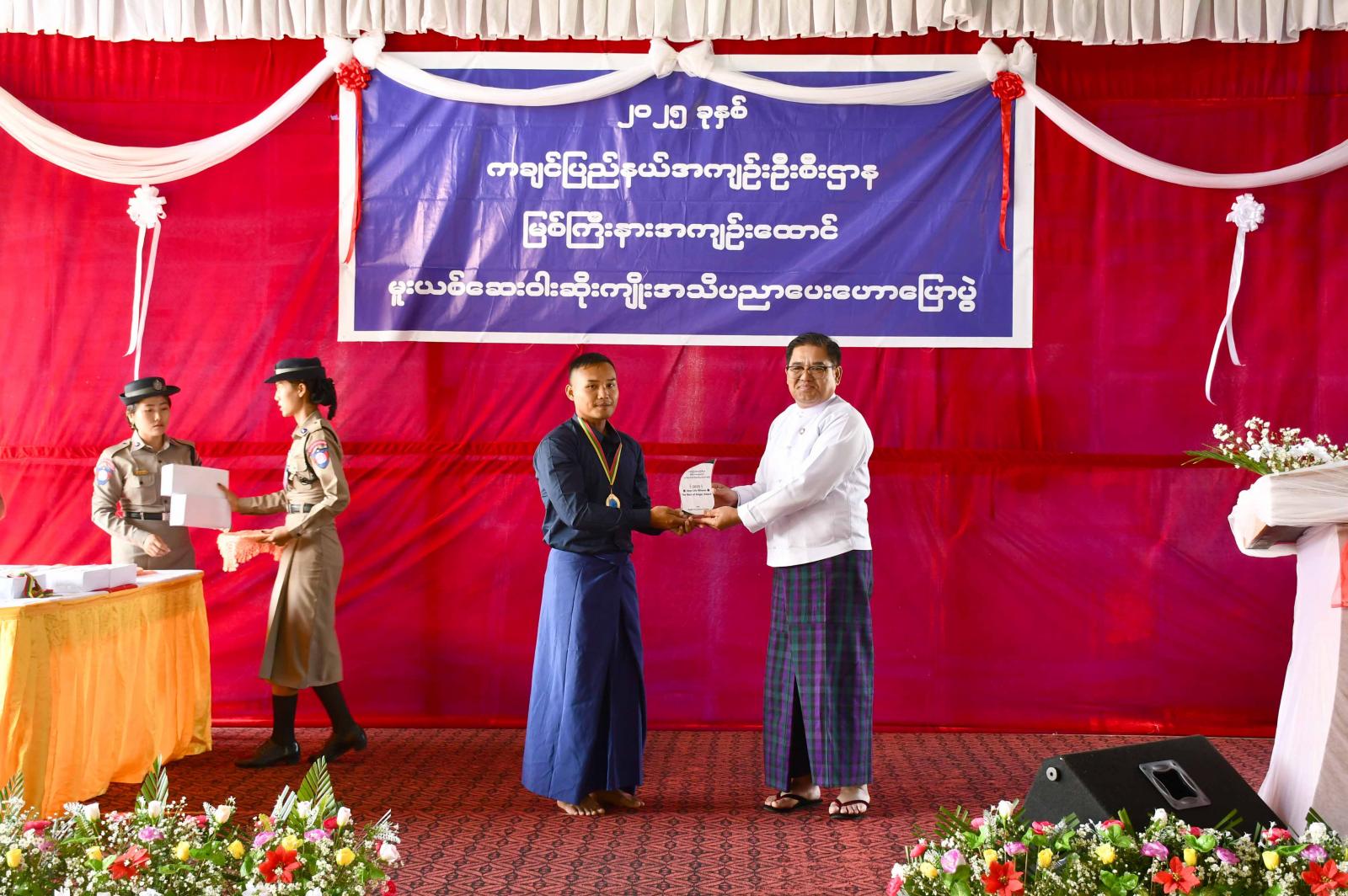 ဆက်လက်၍ ပြည်နယ်ဝန်ကြီးချုပ်က အကျဉ်းထောင်နှင့်အတူ ပူးပေါင်းကူညီကျင်းပပေးကြသော အကျဉ်းထောင်သာသနာပြု (YCC Founder) အဖွဲ့အတွက် ချီးမြှင့်ငွေကျပ် ၅ သိန်းကို ပေးအပ် ချီးမြှင့်ခဲ့ပြီး YCC Founder ဥက္ကဋ္ဌက အဆိုပြိုင်ပွဲဖြစ်မြောက်ရေးအတွက် ကူညီဆောင်ရွက်ပေးကြသော ဒိုင်အဖွဲ့၊ တီးခတ်ပေးကြသူများအား အမှတ်တရလက်ဆောင်များကို ပေးအပ်သည်။