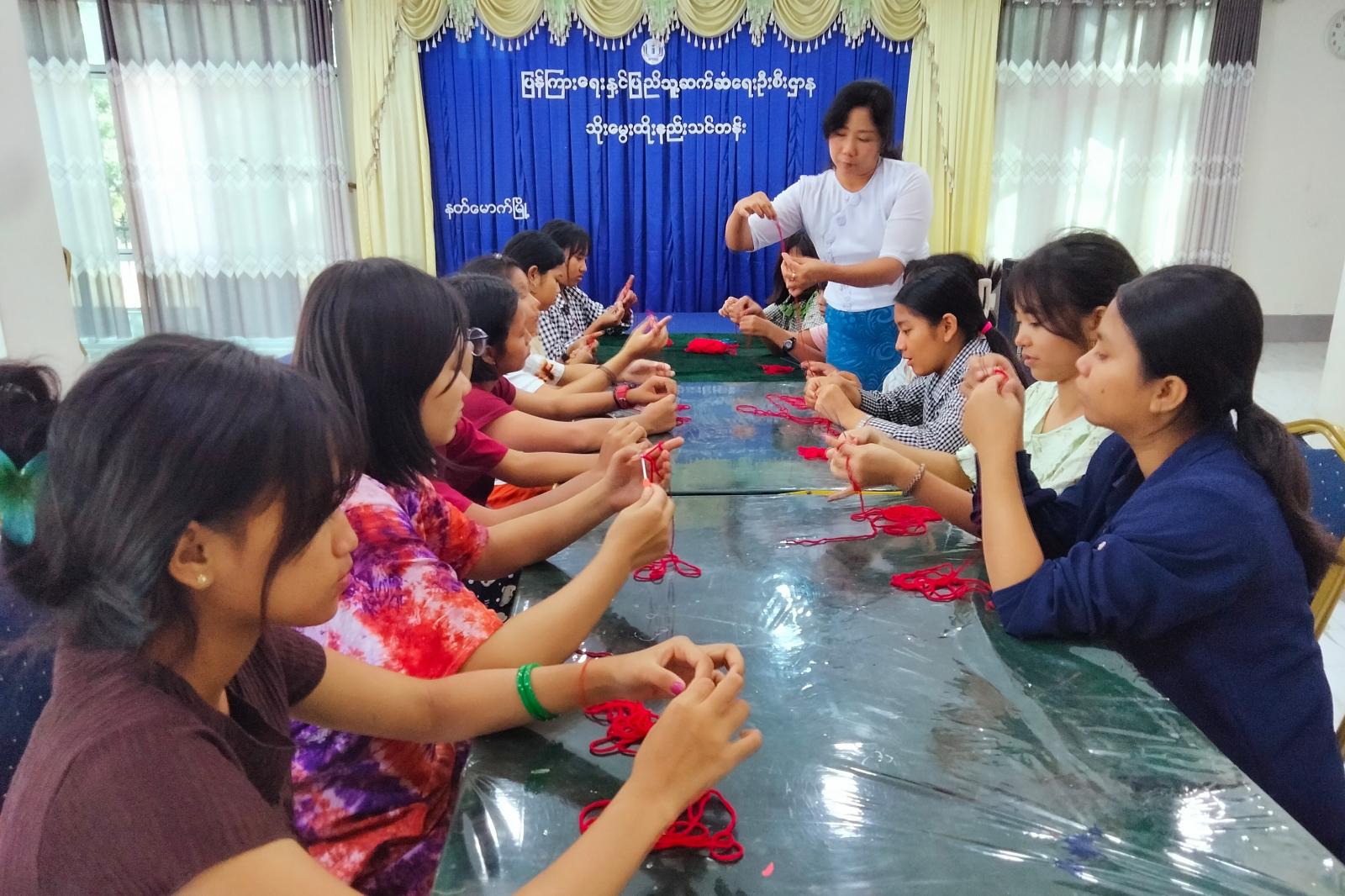 အဆိုပါသင်တန်းကို ကျောင်းသူလေးများအား စနေနှင့်တနင်္ဂနွေကျောင်းပိတ်ရက်များတွင် ဖွင့်လှစ်ပြီး အချိန်ကိုအကျိုးရှိစွာ အသုံးချနိုင်ရေး၊ အသိပညာဗဟုသုတများ တိုးပွားစေရေးနှင့် စာကြည့်တိုက်သို့လာရောက်၍ မိမိတို့ဝါသနာပါသည့် အကြောင်းအရာများကို လေ့လာဆောင်ရွက်တတ်စေရန်၊ ဗလငါးတန်နှင့်ပြည့်စုံပြီး အတွေးအခေါ်မှန်ကန်ရင့်ကျက်သည့် အနာဂတ်ခေါင်းဆောင်ကောင်းများ ပေါ်ထွန်းလာစေရန်ရည်ရွယ်၍ ဖွင့်လှစ်သင်ကြားပေးခြင်းဖြစ်ကြောင်း မြို့နယ်ပြန်ကြားရေးနှင့်ပြည်သူ့ဆက်ဆံရေးဦးစီးဌာန ဦးစီးအရာရှိ ဒေါ်သိမ့်သိမ့်မိုး(တွဲဘက်)က ရှင်းလင်းပြောကြားပြီး သင်တန်းတွင် သိုးမွှေးအခြေခံထိုးနည်းအမျိုးမျိုး၊ ခေါင်းစည်းကွင်း၊ လက်ကိုင်အိတ်နှင့် လူသုံးကုန်ပစ္စည်းအမျိုးမျိုးတို့အား သင်ကြားပေးမည်ဖြစ်ပြီး (၄)ရက်ကြာ ဖွင့်လှစ်သင်ကြားပေးမည်ဖြစ်ရာ ကျောင်းသူ(၁၃)ဦး တက်ရောက်သင်ယူလျက်ရှိကြောင်း သိရသည်။