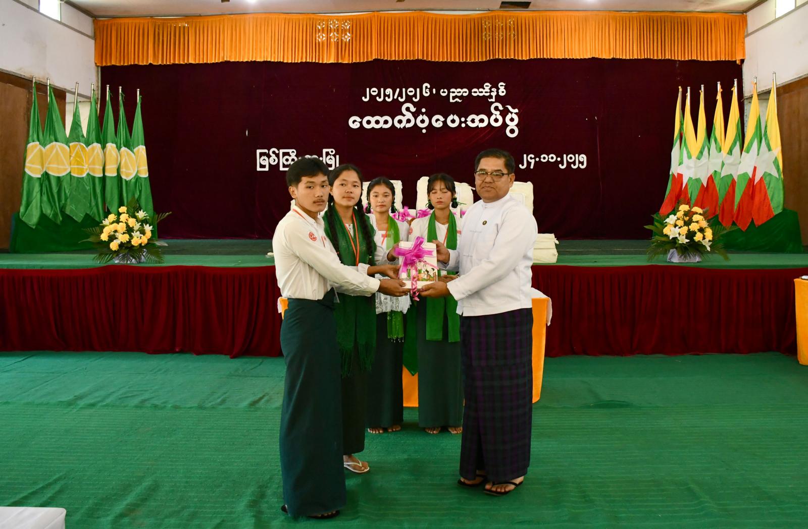 ဆက်လက်၍ ပြည်နယ်ဝန်ကြီးချုပ်၊ ပြည်နယ်တရားလွှတ်တော်တရားသူကြီးချုပ်နှင့် ပြည် နယ်လူမှုရေးရာဝန်ကြီးတို့က ထက်၊ လယ်၊ မူအဆင့်အလိုက် ပြဋ္ဌာန်းစာအုပ်များ၊ ကျောင်းဝတ်စုံများ နှင့် ကျောင်းသုံးဗလာစာအုပ်များကို ထောက်ပံ့ပေးအပ်ခဲ့ကြရာ ကျောင်းကော်မတီအဖွဲ့ဝင်တစ်ဦးက ကျေးဇူးတင်စကားပြန်လည်ပြောကြားခဲ့သည်။