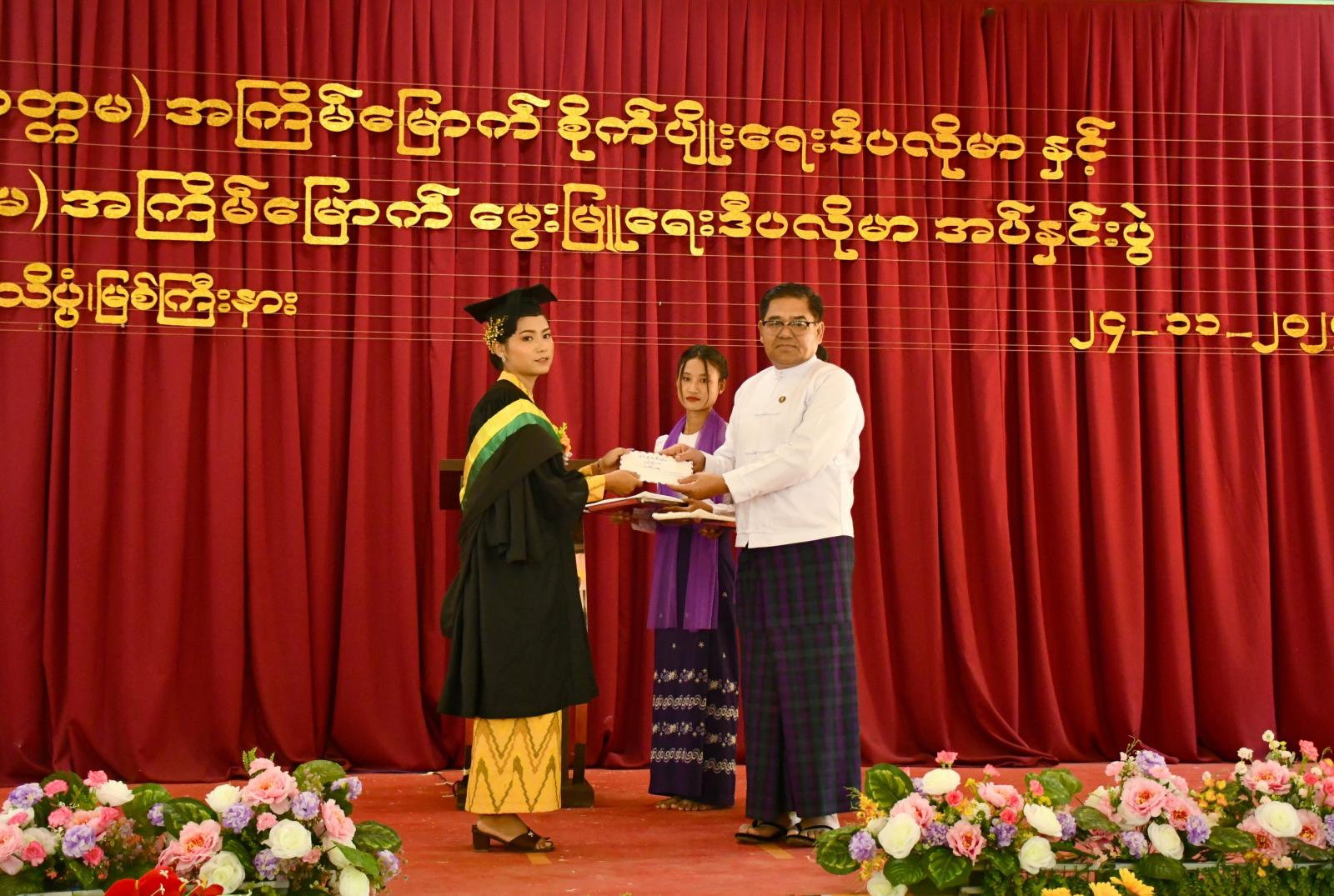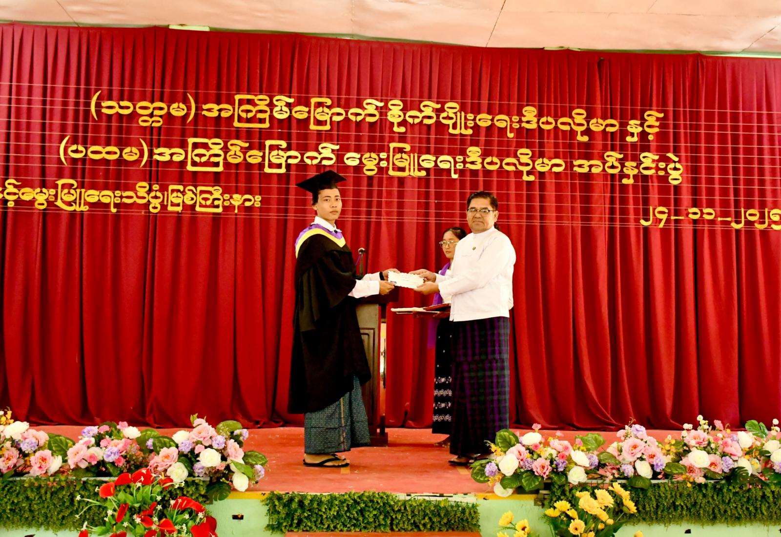 ထို့နောက် ဒီပလိုမာအပ်နှင်းခြင်းကို ကျောင်းအုပ်ကြီးနှင့်တကွ စီမံခန့်ခွဲရေးအဖွဲ့ဝင်များ၊ ပညာရေးအဖွဲ့ဝင်များက သတ္တမအကြိမ်မြောက် စိုက်ပျိုးရေးဒီပလိုမာ ကျောင်းသား/ကျောင်းသူ(၆၁)ဦးနှင့် ပထမအကြိမ်မြောက် မွေးမြူရေးဒီပလိုမာကျောင်းသား/ကျောင်းသူ (၃)ဦးတို့အား ဒီပလိုမာအပ်နှင်း ပေးခဲ့ကြကြောင်း သိရသည်။
