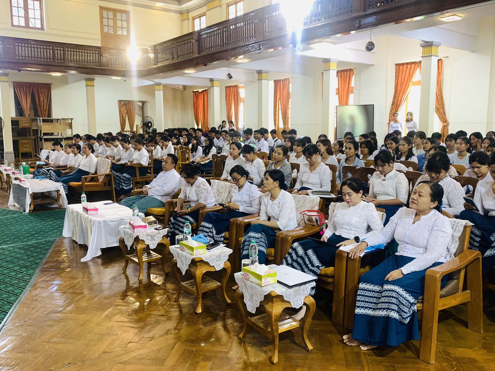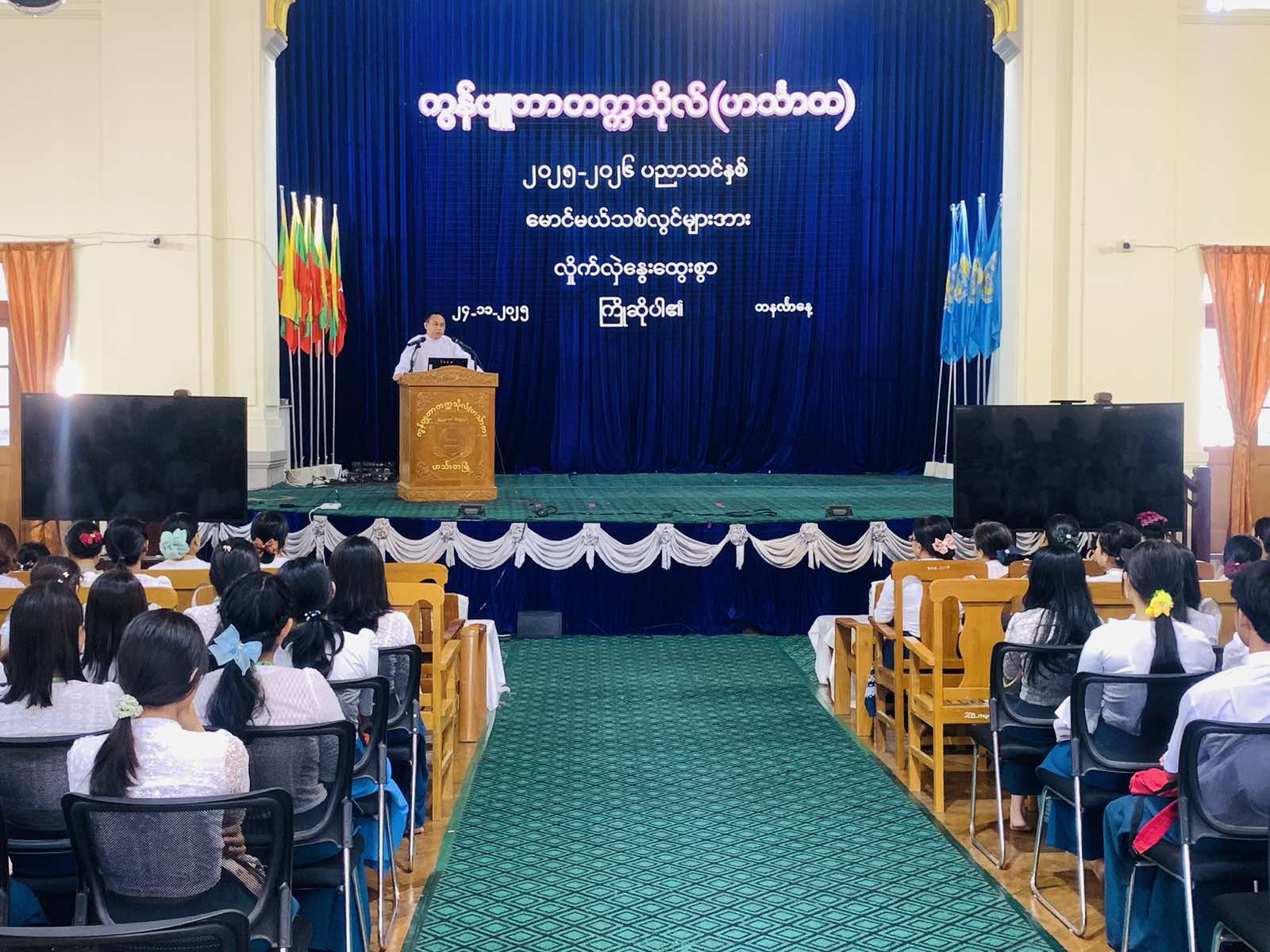 အခမ်းအနားတွင် ဒုတိယပါမောက္ခချုပ် ဒေါက်တာထွန်းမြတ်အောင်က အမှာစကားပြောကြားပြီး သင်ကြားရေး ဌာနမှူးများက ၎င်းတို့ဌာနက သင်ကြားရသော ဘာသာရပ်များ ၎င်းဘာသာရပ်များ၏ အသုံးဝင်မှုများ ၎င်းတို့ဌာနကဆောင်ရွက်သော Project များကို ရှင်းလင်းပြောကြားခဲ့သည်။ ထို့နောက်သင်တန်းရေးရာ ဌာနမှူးက ကျောင်းစည်းကမ်းများ၊ စာမေးပွဲဆိုင်ရာစည်းကမ်းများ၊ ကျောင်းသား၊ ကျောင်းသူများ၏ အခွင့်အရေးများကို ပြောကြားသည်။ ထို့နောက် စီနီယာကျောင်းသူတစ်ဦးမှ မောင်မယ်သစ်လွင်များအား ကြိုဆိုနှုတ်ဆက်စကားပြောပြီး အဆို၊ အက၊ အရေး၊ အတီးဆုရကျောင်းသူတစ်ဦးက သီချင်းဖြင့် ဧည့်ခံဖျော်ဖြေသည်။ ယင်းနောက် ဒေါက်တာထွန်းမြတ်အောင်နှင့် ဌာနမှူးများက မောင်မယ်သစ်လွင် များအား ရင်းရင်းနှီးနှီး နွေးထွေးလှိုက်လှဲစွာ လိုက်လံနှုတ်ဆက်ခဲ့ကြသည်။