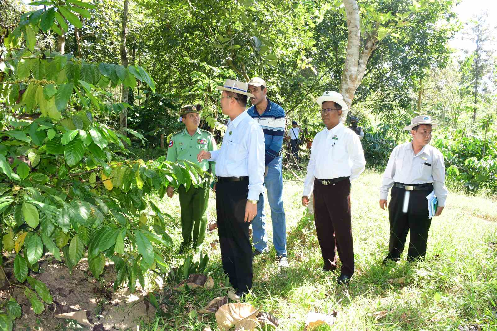 ဦးစွာ တိုင်းဒေသကြီးဝန်ကြီးချုပ်နှင့်အဖွဲ့သည် ပုသိမ်-မော်တင်ကားလမ်းဘေး (၂၈) မိုင်ရှိ Myanmar Agri-Tech Ltd ၏ သဘာဝတောနှင့် ထပ်မံစိုက်ပျိုးထားသည့် အပင်များအောက်တွင် စိုက်ပျိုးထားသည့် ရိုဘက်စတာ မြေပြန့်ကော်ဖီပင်များ ရှင်သန်ဖြစ်ထွန်းအောင်မြင်မှုများကို ကြည့်ရှုအားပေးခဲ့ပြီး ကော်ဖီပင်အောက်ခြေပေါင်းမြက်များရှင်းလင်းခြင်း၊ မြေဆွခြင်း၊ ကော်ဖီသီးများ စတင်ခူးဆွတ်အခြောက်ခံခြင်းများကို ကြည့်ရှုအားပေးခဲ့ရာ တာဝန်ယူ ဆောင်ရွက်လျက်ရှိသည့် ကုမ္ပဏီတာဝန်ရှိသူတစ်ဦးက ရိုဘက်စတာ Robusta(TR4/TR9) တစ်ဧကလျှင် ကော်ဖီပင်(၄၃၅) ပင်စီဖြင့် ၃၁၀ ဧက စိုက်ပျိုးထားရှိမှု၊ အပင်သက်တမ်း သုံးနှစ်ကျော်ချိန်မှ စတင်၍ အသီးမှည့် ခူးဆွတ်လာခဲ့ရာ နှစ်စဉ်တိုးတက်လာမှု၊ ရေ၊ မြေ၊ ရာသီဥတုနှင့်ကိုက်ညီသော မျိုး၊ မြေဩဇာ၊ ဆေးဝါးသုံးစွဲမှု၊ ရေလိုအပ်မှုနှင့် ပျိုးခြံတွင် ပျိုးထောင်မှုတို့အား ရှင်းလင်းတင်ပြခဲ့ရာ တိုင်းဒေသကြီးဝန်ကြီးချုပ်က မိမိတို့တိုင်းဒေသကြီးတွင် ကော်ဖီသီးနှံများလည်း စိုက်ပျိုးဖြစ်ထွန်းအောင်မြင်ပါကြောင်း၊ ဥယျာဉ်ခြံများ၊ နှစ်ရှည်သစ်တောစိုက်ခင်းများအတွင်း မြေပြန့်ကော်ဖီ (ရိုဘက်စတာမျိုး) များကို စိုက်ပျိုးဆောင်ရွက်မည်ဆိုပါက များစွာအကျိုးဖြစ်ထွန်းစေမည်ဖြစ်ပြီး ပြည်ပပို့ကုန်များ ပိုမိုတိုးတက်ရရှိမည်ဖြစ်ကြောင်း၊ ကော်ဖီစံပြစိုက်ခင်းများ ထူထောင်လုပ်ကိုင်မည်ဆိုပါက ကော်ဖီစိုက်ပျိုးရေးကိုစိတ်ဝင်စားသည့် လုပ်ငန်းရှင်များ၊ ကော်ဖီစိုက်တောင်သူများကလည်း ပေါ်ထွက်လာမည်ဖြစ်ပါကြောင်း မှာကြားခဲ့သည်။
