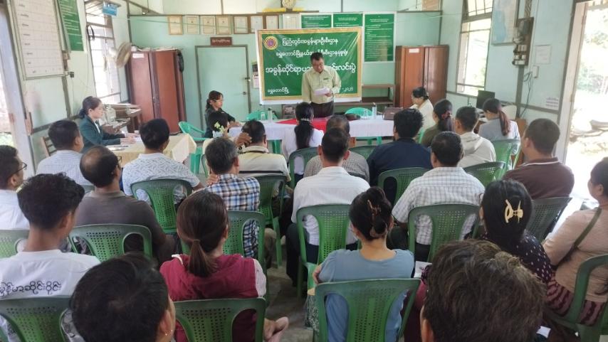 အခမ်းအနားတွင် မြို့နယ်စီမံခန့်ခွဲရေးနှင့်အုပ်ချုပ်ရေးကော်မတီဥက္ကဋ္ဌ ဦးဟံဝင်းအောင်က အဖွင့်အမှာစကားပြောကြားပြီး ပြည်တွင်းအခွန်များဦးစီးဌာန၊ မြို့နယ်အခွန်ဦးစီးဌာနမှူး ဒေါ်ကြည်ပြာခင်မှ အခွန်ဆိုင်ရာကိစ္စရပ်များအား ရှင်းလင်းပြောကြားရာတွင်ပြေစာများအပေါ် အခွန်အမှတ်တံဆိပ်ကပ်နှိပ်ခြင်းဆိုင်ရာ ပြဋ္ဌာန်းချက်များနှင့် လက်ကိုင်ဖုန်း (Handset) များနှင့် ဆက်စပ်ပစ္စည်းများ ရောင်းချ/ဝန်ဆောင်မှု ဆောင်ရွက်ခြင်းအပေါ် အခွန်အမှတ်တံဆိပ်ကပ် နှိပ်ခြင်းဆိုင်ရာ ပြဋ္ဌာန်းချက်များအား ရှင်းလင်းဆွေးနွေးပေးခဲ့သည်။