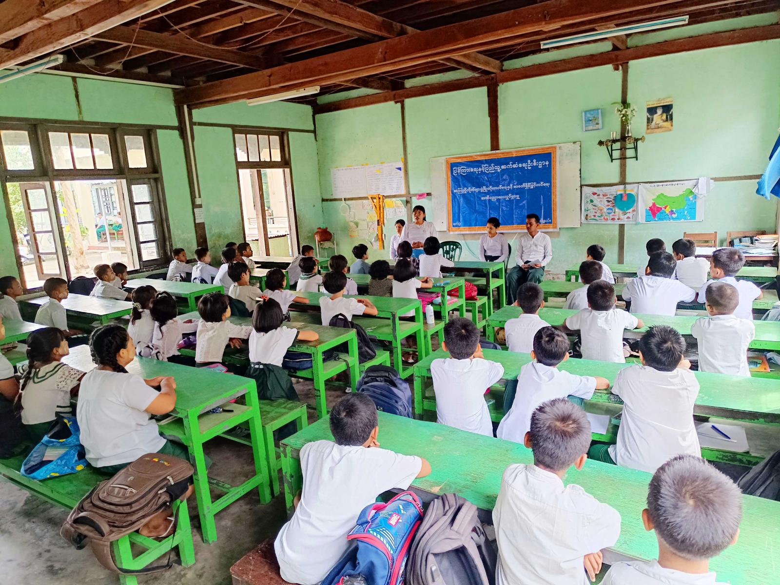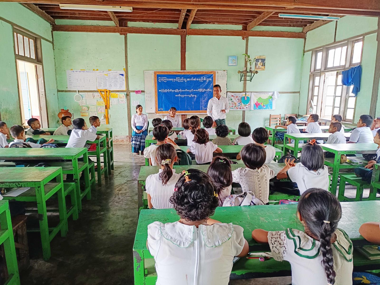 ဧရာဝတီတိုင်းဒေသကြီး၊ မြန်အောင်ခရိုင်၊ ကြံခင်းမြို့နယ်၊ ရွာသစ်ရပ်ကွက်ရှိ အမှတ်(၂)အခြေခံပညာမူလအထက်တန်းကျောင်းတွင် ကျောင်းသား၊ ကျောင်းသူများ အသိဉာဏ်ပညာဖွံ့ဖြိုးတိုးတတ်စေရန်၊ ဗလငါးတန်ပြည်စုံလာစေရန်နှင့် စာဖတ်ရှိန်မြင့်မားရေး အသိပညာပေးလုပ်ငန်းများကို ပြန်ကြားရေးနှင့်ပြည်သူ့ဆက်ဆံရေးဦးစီးဌာနနှင့် အခြေခံပညာဦးစီးဌာနတို့ပူးပေါင်း၍ ယနေ့နံနက် ပိုင်းက အဆိုပါကျောင်းရှိ စာသင်ခန်းမ၌ ပြုလုပ်သည်။