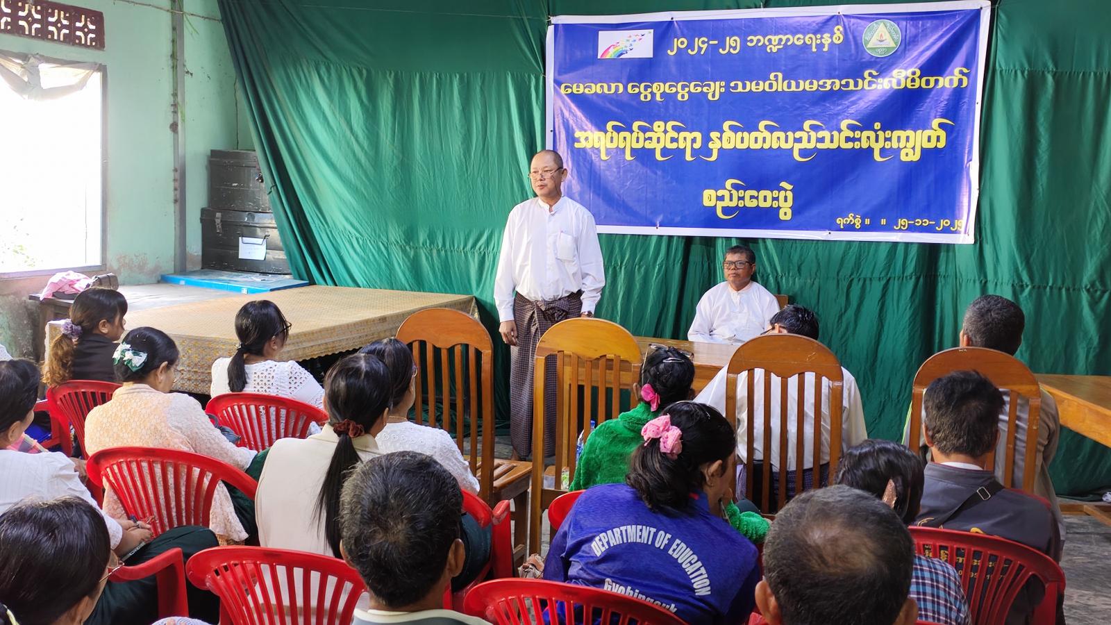 အခမ်းအနားတွင် မေခလာငွေစုငွေချေးပညာရေး သမဝါယမအသင်းဥက္ကဋ္ဌ ဦးမင်းဇော်မှ အသင်းဆိုင်ရာကိစ္စရပ်များ ရှေးလုပ်ငန်းစဉ်များကို အဖွင့်အမှာစကားပြောကြားပြီး မြို့နယ်သမဝါယမဦးစီးဌာနမှ ဦးစီးအရာရှိ ဒေါ်အေးသန်းဌေးက သမဝါယမအသင်းဥပဒေ၊ နည်းဥပဒေနှင့် သမဝါယမအသင်းများ ဖွံ့ဖြိုးတိုးတက်စေရန်လုပ်ဆောင်ရမည့်အချက်များကို ရှင်းလင်းပြောကြားခဲ့သည်။