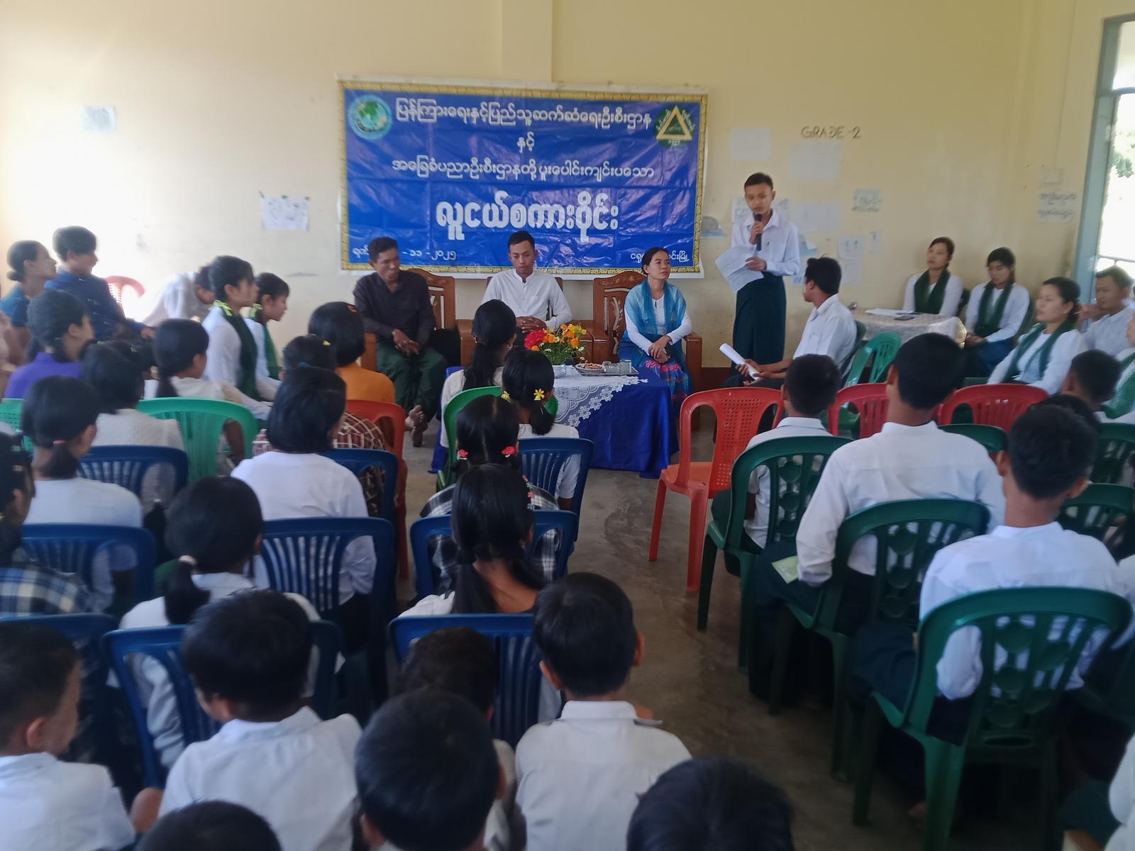 ထို့နောက်လူငယ်စကားဝိုင်းကိုကျင်းပရာ Grade-7 ကျောင်းသားမောင်ခန့်ကိုကိုနိုင်မှ လူငယ်နှင့်ပရဟိတခေါင်းစဉ်ဖြင့်လည်းကောင်း၊ Grade-7 ကျောင်းသား မောင်လင်းရတုချိုမှ လူငယ်နှင့်ငွေကြေးခေါင်းစဉ်ဖြင့်လည်းကောင်း၊ Grade-8 ကျောင်းသူ မသွန်းသံသာမှ လူငယ်နှင့်ကိုယ်ကျင့်တရားခေါင်းစဉ်ဖြင့်လည်းကောင်း၊ Grade-8 ကျောင်းသူ မရွှေအိမ်မင်းစံမှ လူငယ်နှင့်ဆေးလိပ်အန္တရာယ်ခေါင်းစဥ်ဖြင့်လည်းကောင်း ပါဝင်ဆွေးနွေးကြပြီး ဆွေးနွေးမှုများအပေါ် ခေါင်းစဉ်အလိုက် ပြန်ကြားရေးနှင့်ပြည်သူ့ဆက်ဆံရေးဦးစီးမှူးမှ ပြန်လည်သုံးသတ်ဆွေးနွေးပေးခဲ့သည်။