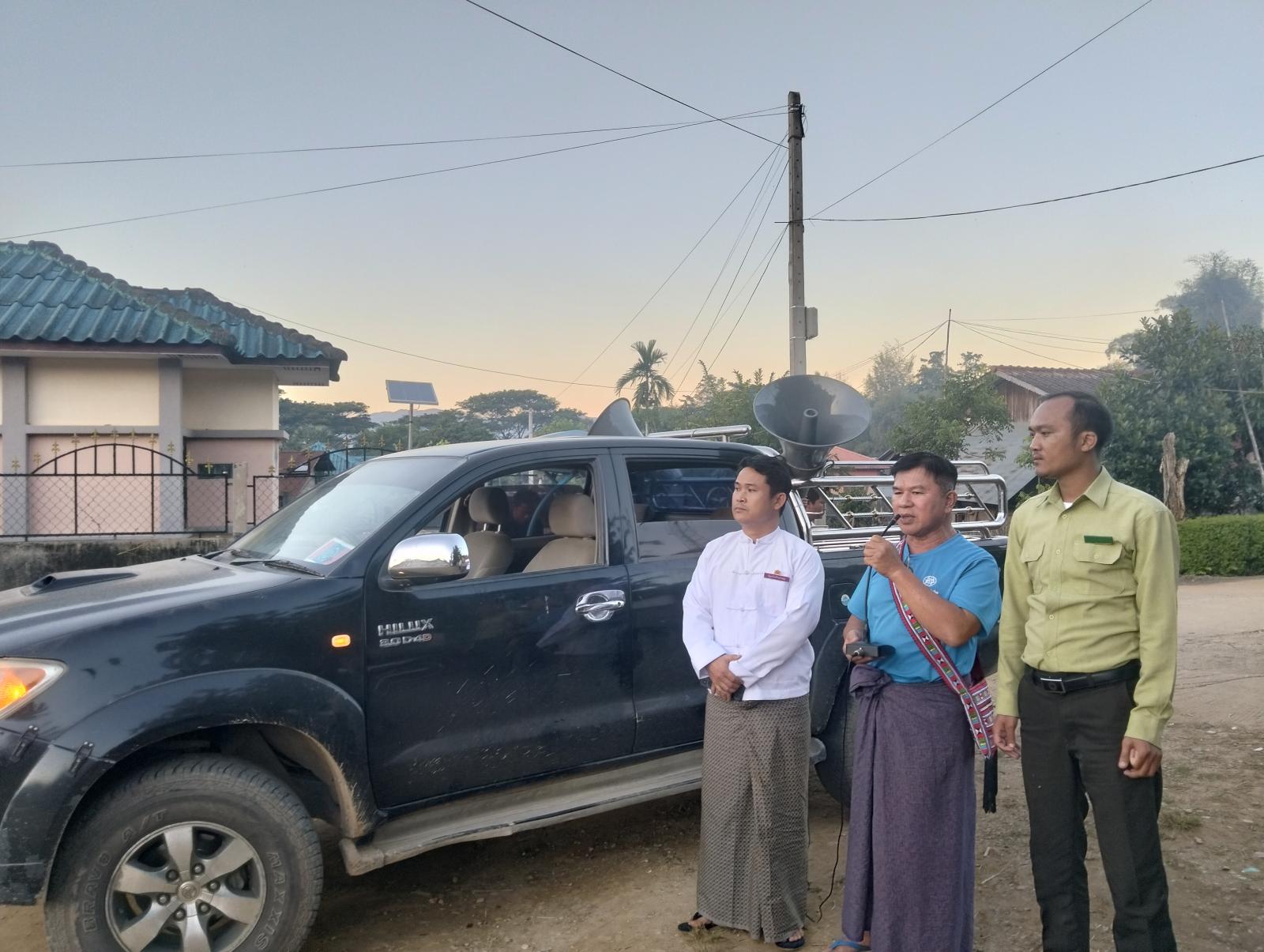 ထိုသို့ အသိပညာပေးဆောင်ရွက်ရာတွင် မြို့နယ်အထွေထွေအုပ်ချုပ်ရေးဦးစီးဌာမှ ဒုတိယဦးစီးမှူး ဦးအောင်မြင့်ထွန်း၊ မြို့နယ်ရွေးကောက်ပွဲကော်မရှင်အဖွဲ့ခွဲမှ ဦးစိုင်းကိုနှင့် တာဝန်ရှိသူများက မြန်မာ၊ ရှမ်း၊ အာခါ၊ လားဟူဘာသာစကားများဖြင့် ၂၀၂၅ ခုနှစ်၊ ပါတီစုံဒီမိုကရေစီ အထွေထွေရွေးကောက်ပွဲ ကျင်းပမည့်အခြေအနေများ၊ မြို့နယ်အတွင်း မဲဆန္ဒရှင်စာရင်း ကပ်ထားကြေညာထားသည့် အခြေအနေများ၊ မဲစာရင်းတွင် မိမိအမည် ပါ/မပါ၊ မပါသင့်သူများ စသည့်အကြောင်းအရာများကို သတ်မှတ်ထားသည့် ပုံစံများဖြင့် လျှောက်ထားနိုင်ရေးတို့ကို အသံချဲ့စက်ဖြင့် လှည့်လည်အသိပေးနှိုးဆော်ခဲ့သည်။