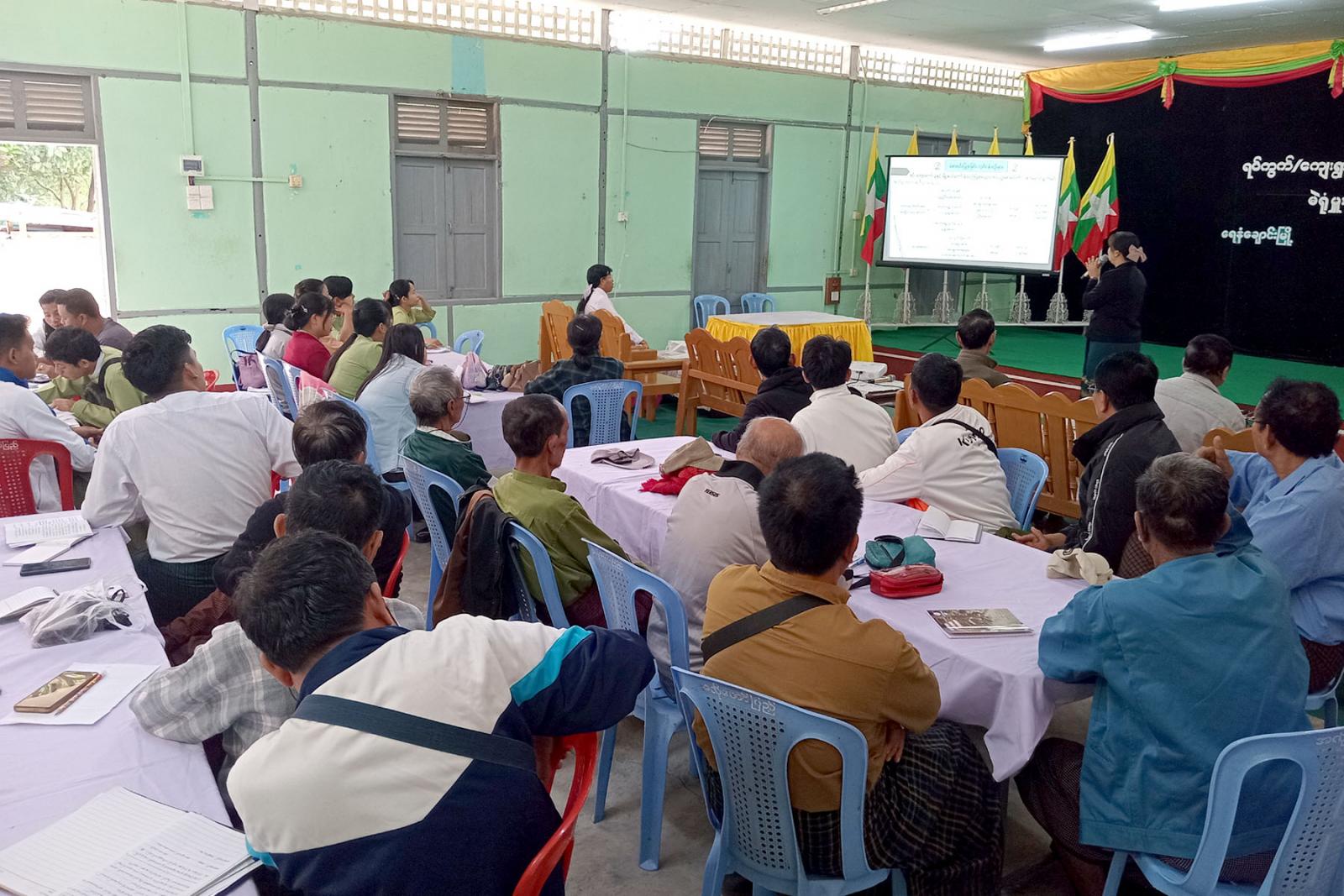 သင်တန်းတွင် မြို့နယ်ရွေးကောက်ပွဲကော်မရှင်အဖွဲ့ခွဲဥက္ကဋ္ဌ ဦးမျိုးလွင်က အမှာစကားပြောကြားပြီး မြို့နယ်ရွေးကောက်ပွဲကော်မရှင်အဖွဲ့ခွဲရုံး ဦးစီးအရာရှိ ဒေါ်ချိုချိုလွင်နှင့် မြို့နယ်ရွေးကောက်ပွဲကော်မရှင်အဖွဲ့ခွဲ အဖွဲ့ဝင်များက ရွေးကောက်ပွဲဆိုင်ရာတာဝန်နှင့် လုပ်ပိုင်ခွင့်များ၊ မဲစာရင်းပြုစုခြင်း၊ မဲဆန္ဒနယ်နှင့် မဲစာရင်းများ ကြေညာခြင်း၊ မဲစာရင်းထုတ်ပြန် ကြေညာပြီးနောက် ကော်မရှင်အဖွဲ့ခွဲများမှ လုပ်ဆောင်ရမည့် လုပ်ငန်းစဉ်များ၊ မဲစာရင်းတွင် တောင်းဆိုလွှာ ကန့်ကွက်လွှာ ပြင်ဆင်လွှာများတင်သွင်းခြင်း၊ မဲဆန္ဒနယ်အတွင်း မဲရုံသို့ မလာနိုင်သည့် မဲဆန္ဒရှင်များ ကြိုတင်မဲပေးခွင့်ရှိခြင်းနှင့် ကြိုတင်ဆန္ဒမဲလက်မှတ်ဖြင့် မဲပေးခြင်း စသည့် ရွေးကောက်ပွဲဆိုင်ရာလုပ်ငန်းစဉ်များကို ဆွေးနွေးပို့ချသည်။
