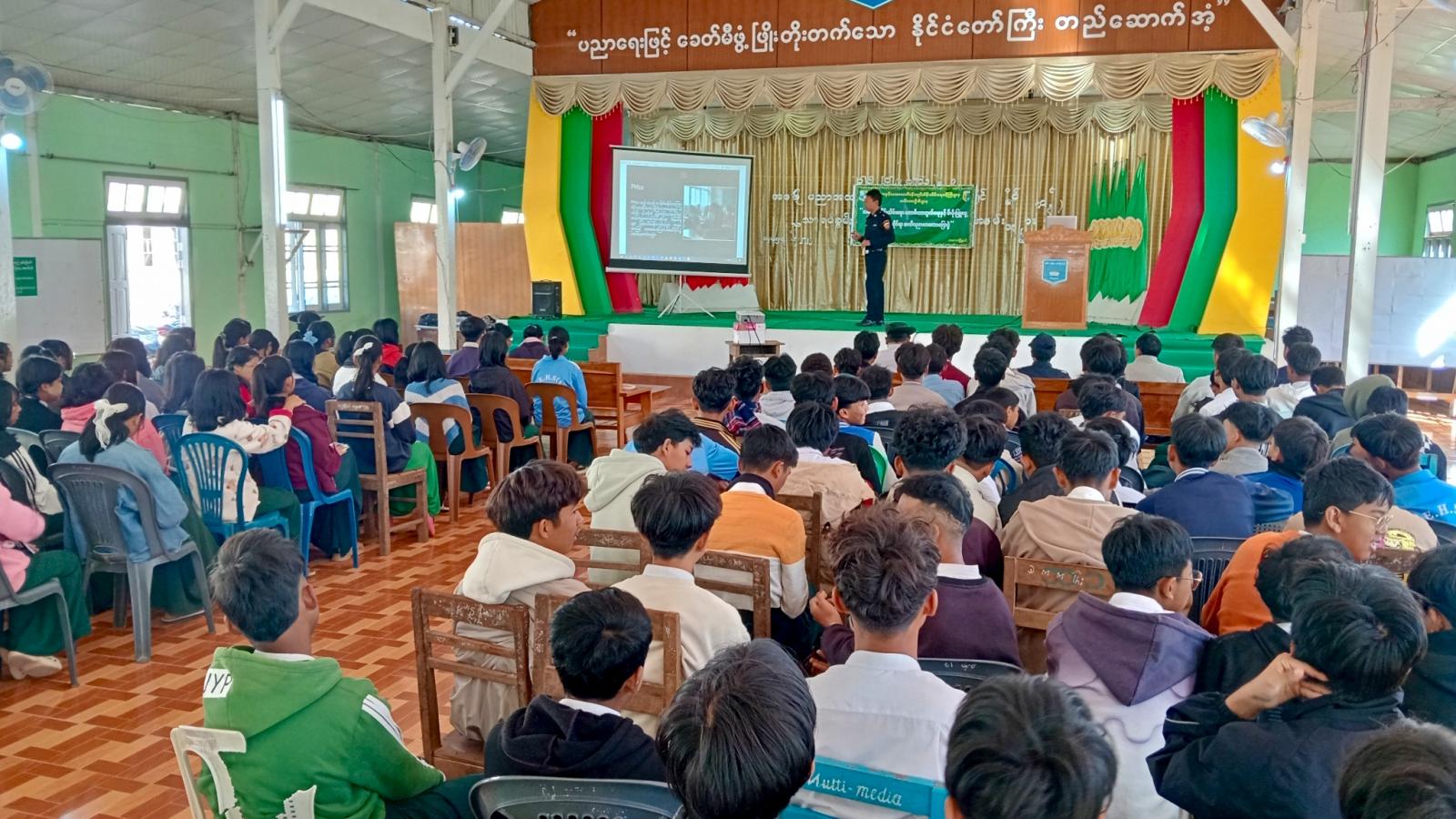 ရှေးဦးစွာ အမှတ်(၁) အခြေခံပညာအထက်တန်းကျောင်း ကျောင်းအုပ်ဆရာမကြီး ဒေါ်နီနီထွေးက အဖွင့်အမှာစကား ပြောကြားပြီး မြို့နယ်သစ်တောဦးစီးဌာန၊ ဦးစီးအရာရှိ ဦးကျော်စိုးလွင်က သစ်တောထိန်းသိမ်းရေး၊ တောမီးကာကွယ်ရေးနှင့် မီးခိုးမြူငွေ့ လျှော့ချရေးနှင့် ပတ်သက်၍ ဟောပြောခဲ့သည်။ ထို့နောက် မြို့နယ်မီးသတ်ဦးစီးဌာန၊ ဒုတိယဦးစီးမှူး ဦးဝေဇင်က မီးဘေးအန္တရာယ် ကြိုတင်ကားကွယ်ရေးနှင့် မီးခိုးမြူငွေ့ညစ်ညမ်းမှု ဖြစ်ပေါ်သည့် အကြောင်းအရင်းများအကြောင်းတို့ကို အသိပညာပေး ဟောပြောခဲ့ကြပြီး သစ်တောဦးစီးဌာန၊ ဦးစီးအရာရှိက အမှတ်(၁) အခြေခံပညာအထက်တန်းကျောင်း၊ ကျောင်းစာကြည့်တိုက်အတွက် သစ်တောကြေးမုံမဂ္ဂဇင်းစာအုပ်များ လှူဒါန်းပေးခဲ့ကြောင်း သိရသည်။