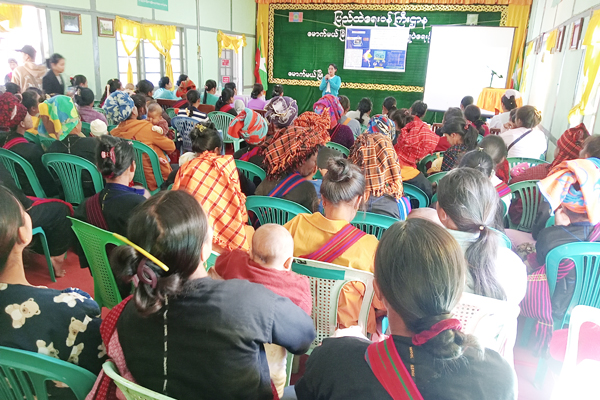 ရှေးဦးစွာ မြို့နယ်စီမံခန့်ခွဲရေးနှင့်အုပ်ချုပ်ရေးကော်မတီဥက္ကဋ္ဌ ဦးမင်းသက်နိုင်က အဖွင့်အမှာစကားပြောကြားပြီး လူမှုဝန်ထမ်းဦးစီးဌာနမှ ဦးစီးအရာရှိ ဒေါ်သက်သက်ဝင်းက မောက်မယ်မြို့နယ်အတွင်းရှိ ကိုယ်ဝန်ဆောင် မိခင်များနှင့်၎င်းတို့မှမွေးဖွားလာ သောအသက် ၂ နှစ်အောက် ကလေးသူငယ်များအား လူမှုဝန်ထမ်း၊ ကယ်ဆယ်ရေးနှင့်ပြန်လည်နေရာချထားရေးဝန်ကြီးဌာန၊ လူမှုဝန်ထမ်းဦးစီးဌာနမှနှစ်စဉ် (MCCT) ထောက်ပံ့ငွေများပေးအပ်ရခြင်း၏ ရည်ရွယ်ချက်များပြောကြားကာ မြို့နယ်ပြည်သူ့ကျန်းမာရေးဦးစီးဌာနမှ ကျန်းမာရေးမှူး ဒေါ်ကေသရီကျော်နှင့် အမျိုးသမီးကျန်းမာရေးဆရာမ ဒေါ်နန်းဆိုင်စံတို့က ကိုယ်ဝန်ဆောင်မိခင်များနှင့် ကလေးသူငယ်များအတွက် အဓိကလိုက်နာဆောင်ရွက်ရမည့် လူ့ဘဝအစရက်(၁၀၀၀)အတွင်းအာဟာရနှင့်ကျန်းမာရေးဆိုင်ရာ လိုအပ်ချက်များပြည့်မီ၍ ကလေးသူငယ်များ၏ ဦးနှောက်နှင့်ခန္ဓာကိုယ် ကောင်းစွာဖွံ့ဖြိုးတိုးတက်စေရန် အမူအကျင့်ပြောင်းလဲရေး အသိပညာပေးဟောပြောခြင်းကို ပရိုဂျက်တာဖြင့် ရှင်းလင်းဟောပြောပေးခဲ့ကြောင်း သိရသည်။