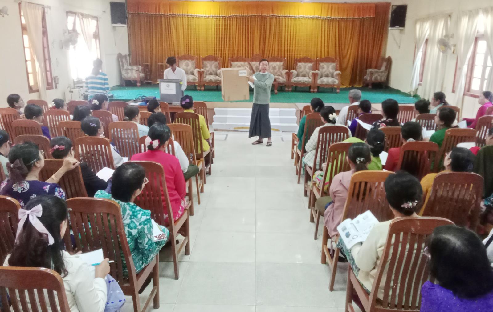ထို့နောက် မြို့နယ်ရွေးကောက်ပွဲကော်မရှင်အဖွဲ့ခွဲ အတွင်းရေးမှူး ဦးအေးဇော်အောင်က မဲရုံမှူး၊ ဒုတိယမဲရုံမှူးနှင့် မဲရုံအဖွဲ့ဝင် လုပ်ငန်းလမ်းညွှန်ချက်များ၊ မဲပေးစက်ဆိုင်ရာလုပ်ငန်းစဥ်များကို စာတွေ့၊ လက်တွေ့ ရှင်းလင်းပို့ချပေးရာ တက်ရောက်လာကြသည့် မဲရုံမှူး၊ ဒုတိယမဲရုံမှူးနှင့် မဲရုံအဖွဲ့ဝင်များအဖြစ်တာဝန်ယူကြမည့် ဆရာ/ဆရာမ သင်တန်းသား/သင်တန်းသူများမှ သိရှိလိုသည့်အချက်များအား မေးမြန်းဆွေးနွေးခဲ့ကြောင်းနှင့် သင်တန်းကာလမှာ နိုဝင်ဘာလ (၂၅) ရက်နေ့မှ နိုဝင်ဘာလ (၂၆) ရက်နေ့ထိ သင်တန်းသား/သင်တန်းသူ (၁၆၄) ဦး တက်ရောက်ကြောင်း မြို့နယ်ရွေးကောက်ပွဲကော်မရှင်အဖွဲ့ခွဲမှ သိရသည်။