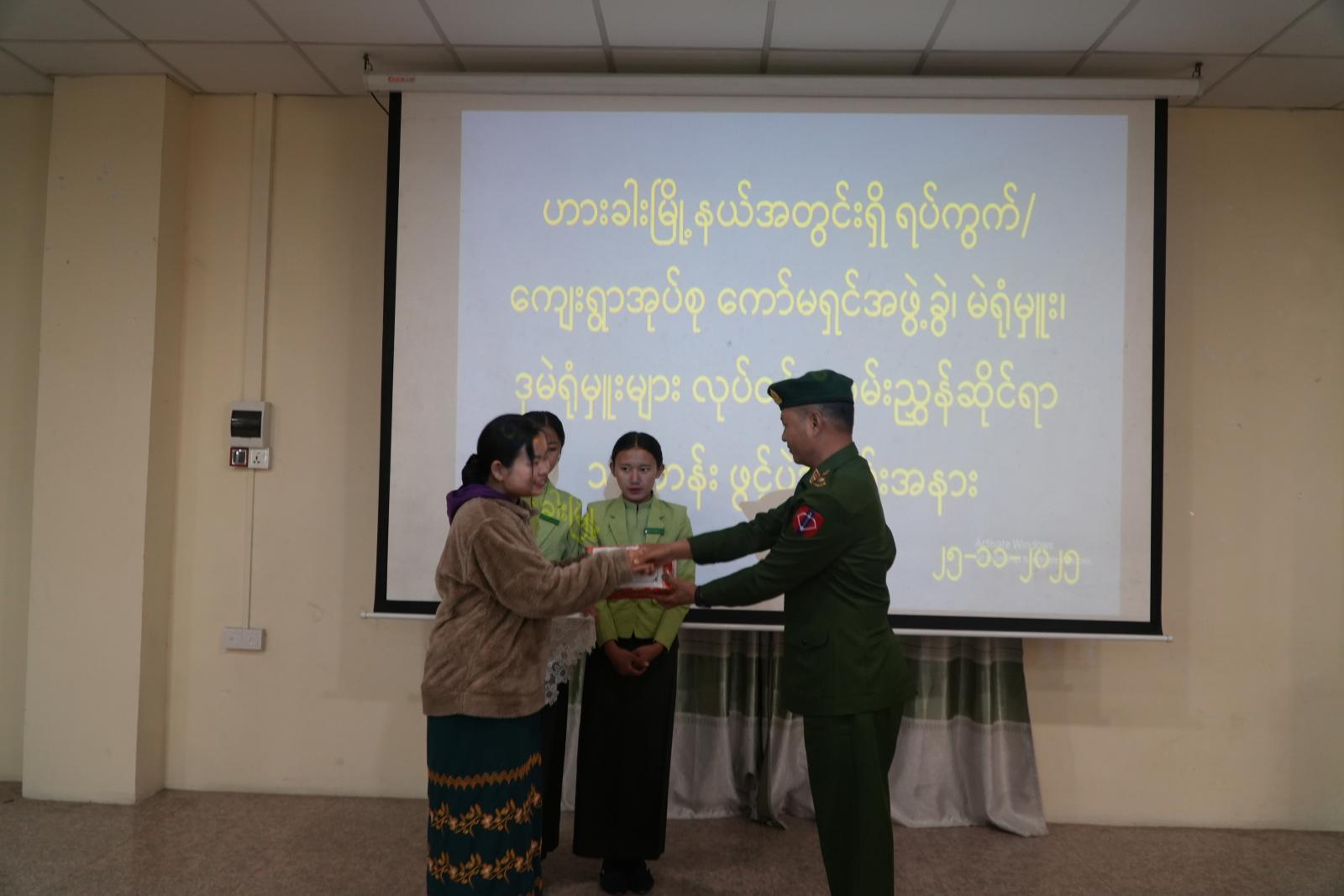 ယင်းနောက် ခေတ္တချင်းပြည်နယ်ဝန်ကြီးချုပ်က နည်းပြ၊ ကြီးကြပ်သူနှင့် သင်တန်းသား ၊ သင်တန်းသူများအတွက် ထောက်ပံ့ငွေများကို ပေးအပ်ရာ နည်းပြ၊ ကြီးကြပ်သူနှင့် သင်တန်းသား ၊ သင်တန်းသူများကိုယ်စား ဟားခါးမြို့နယ် ရွေးကောက်ပွဲ ကော်မရှင်အဖွဲ့ခွဲမှ တာဝန်ရှိသူတစ်ဦးက လက်ခံရယူကြောင်း သိရသည်။၏