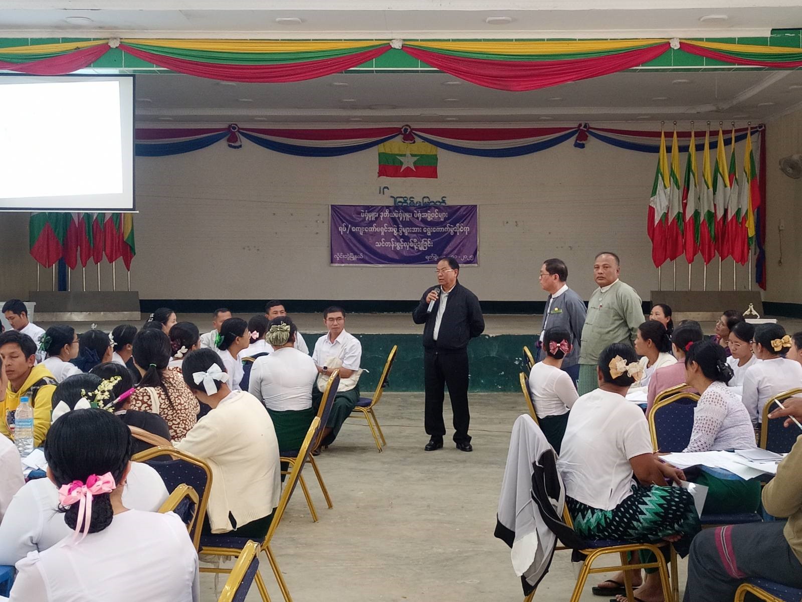 ဦးစွာ ပြည်ထောင်စုရွေးကောက်ပွဲကော်မရှင်အဖွဲ့ဝင် ဦးကြည်သိန်း(ကရင်ပြည်နယ်တာဝန်ခံ)က ပြည်ထောင်စုရွေးကောက်ပွဲကော်မရှင်မှ လက်ရှိဆောင်ရွက်လျက်ရှိသော ရွေးကောက်ပွဲလုပ်ငန်းစဉ်များကို ရှင်းလင်းပြောကြားခဲ့ပြီး တက်ရောက်လာကြသူများမှ မြို့နယ်တွင်လက်ရှိဆောင်ရွက်နေသည့် ရွေးကောက်ပွဲလုပ်ငန်းစဉ်များအား ရှင်းလင်းတင်ပြခဲ့ကြပြီး ပြည်ထောင်စုရွေးကောက်ပွဲကော်မရှင်အဖွဲ့ဝင် ဦးကြည်သိန်းက လိုအပ်သည်များကို ပေါင်းစပ်ညှိနှိုင်းဆောင်ရွက်ပေးခဲ့ပြီး အစည်းအဝေးတက်ရောက်လာကြသူများအား ရင်းရင်းနှီးနှီးနှုတ်ဆက်ခဲ့ပါသည်။