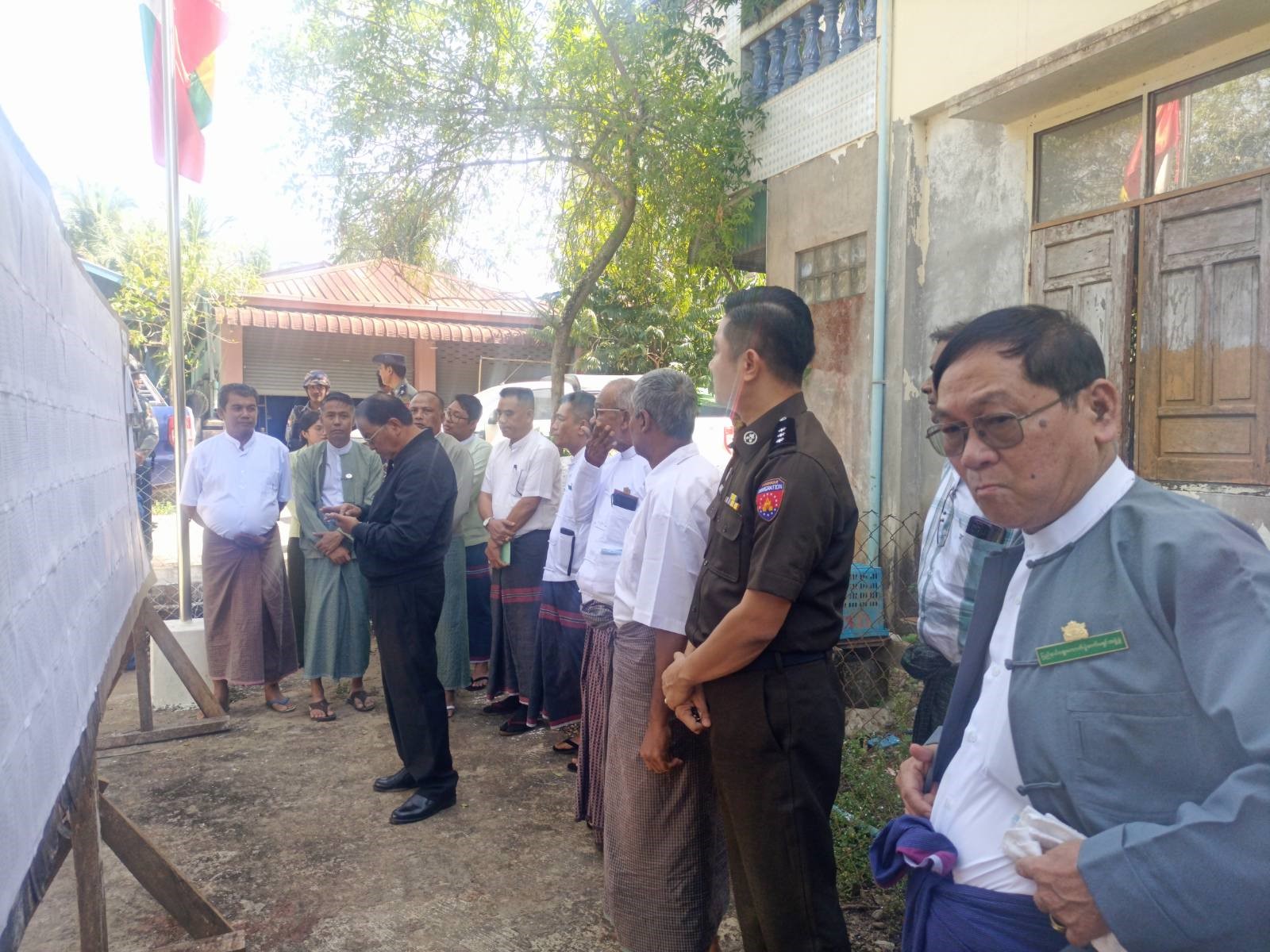 ပြည်ထောင်စုရွေးကောက်ပွဲကော်မရှင်အဖွဲ့ဝင် ဦးကြည်သိန်း(ကရင်ပြည်နယ်တာဝန်ခံ)သည် ယမန်နေ့ နံနက်ပိုင်းတွင် တာဝန်ရှိသူများလိုက်ပါလျက် လှိုင်းဘွဲမြို့နယ်တွင် ဆောင်ရွက်လျက်ရှိသော ရွေးကောက်ပွဲလုပ်ငန်းစဉ်များနှင့်ပတ်သက်၍ လုပ်ငန်းညှိနှိုင်းအစည်းအဝေးကို မြို့နယ်ရွေးကောက်ပွဲကော်မရှင်အဖွဲ့ခွဲရုံး အစည်းအဝေးခန်းမတွင်ကျင်းပရာ လှိုင်းဘွဲမြို့နယ်မှ ရွေးကောက်ပွဲကော်မရှင်ဥက္ကဋ္ဌနှင့်အဖွဲ့ဝင်များ၊ မြို့နယ်အုပ်ချုပ်ရေးအဖွဲ့အစည်းမှတာဝန်ရှိသူများ တက်ရောက်ခဲ့ကြသည်။