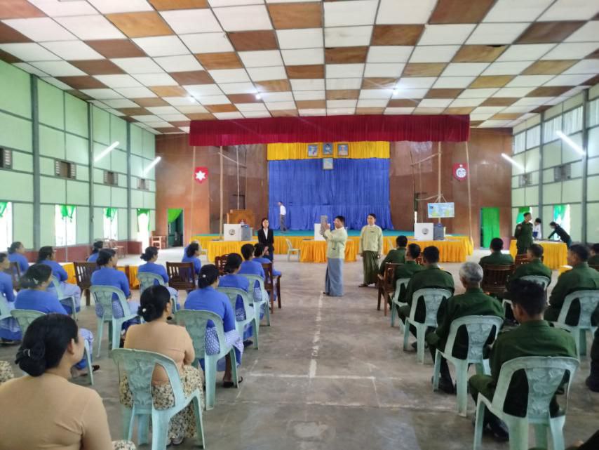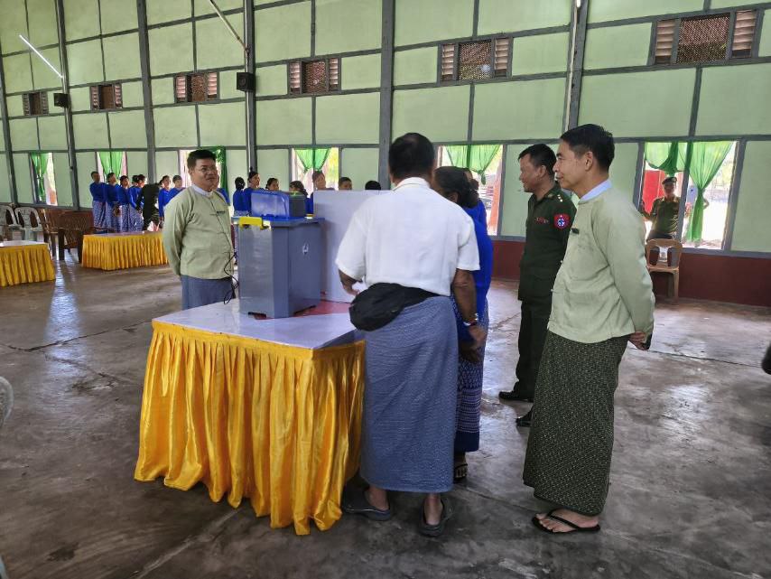 ပဲခူးတိုင်းဒေသကြီး၊ နတ်တလင်းခရိုင်၊ သဲကုန်းမြို့နယ်တွင် မြန်မာအီလက်ထရောနစ်မဲပေးစက် (MEVM) ကိုင်တွယ်အသုံးပြုခြင်းဆိုင်ရာ အသိပညာပေး ဟောပြောပွဲနှင့် လက်တွေ့သရုပ်ပြ စမ်းသပ်ဆန္ဒမဲပေးခြင်းလုပ်ငန်းကို ယမန်နေ့က သဲကုန်းမြို့နယ်၊ အင်းမမြို့၊ သီရိကန်သာရပ်ကွက်၊ တပ်နယ်ခန်းမတွင် ကျင်းပပြုလုပ်ခဲ့ရာ နတ်တလင်းခရိုင်စီမံခန့်ခွဲရေးနှင့် အုပ်ချုပ်ရေးကော်မတီဥက္ကဋ္ဌ ဦးတင်ရွှေ ကြည့်ရှုအားပေးခဲ့ကြောင်း သိရသည်။