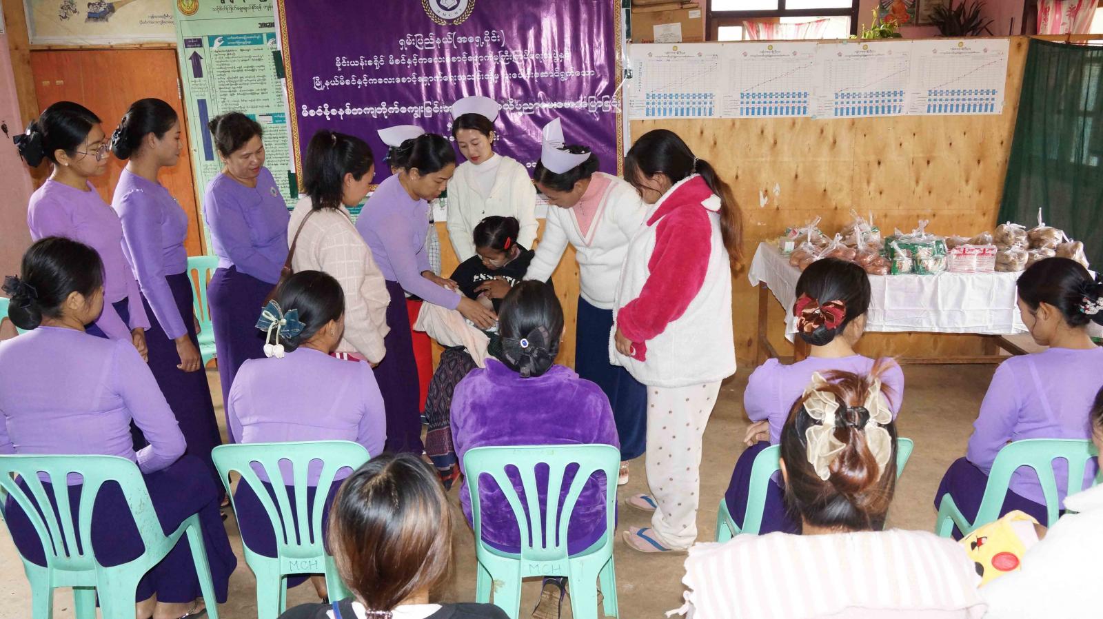 အခမ်းအနားတွင် ခရိုင်မိခင်နှင့်ကလေးစောင့်ရှောက်မှုကြီးကြပ်ရေးအဖွဲ့ဥက္ကဋ္ဌ ဒေါ်နွယ်နီဝင်က အဖွင့်အမှာစကား ပြောကြားပြီး မြို့နယ်မိခင်နှင့်ကလေးကျန်းမားရေးဌာန၊ အမျိုးသမီးကျန်းမာရေးဆရာမ ဒေါ်ဌေးဌေးခိုင်မှ ကိုယ်ဝန်ဆောင်မိခင်များနှင့် နို့တိုက်မိခင်များအား သားဆက်ခြားခြင်းအကြောင်းနှင့် မိခင်နို့ စနစ်တကျ တိုက်ကျွေးခြင်းဆိုင်ရာများကို အသိပညာပေး ဟောပြောသည်။ ဆက်လက်၍ အာဟာရသင့်တင့်မျှတစွာစားသုံးခြင်း၊ မိခင်နို့စနစ်တကျ တိုက်ကျွေးနည်းသရုပ်ပြခြင်းနှင့် ကျန်းမားရေးဆိုင်ရာ အသိပညာပေးခြင်းများ ဆောင်ရွက်ခဲ့ကြပြီး အာဟာရဖြစ် အစားအစားများကို အသီးသီးထောက်ပံ့ပေးအပ်ခဲ့ကြကြောင်း သိရသည်။