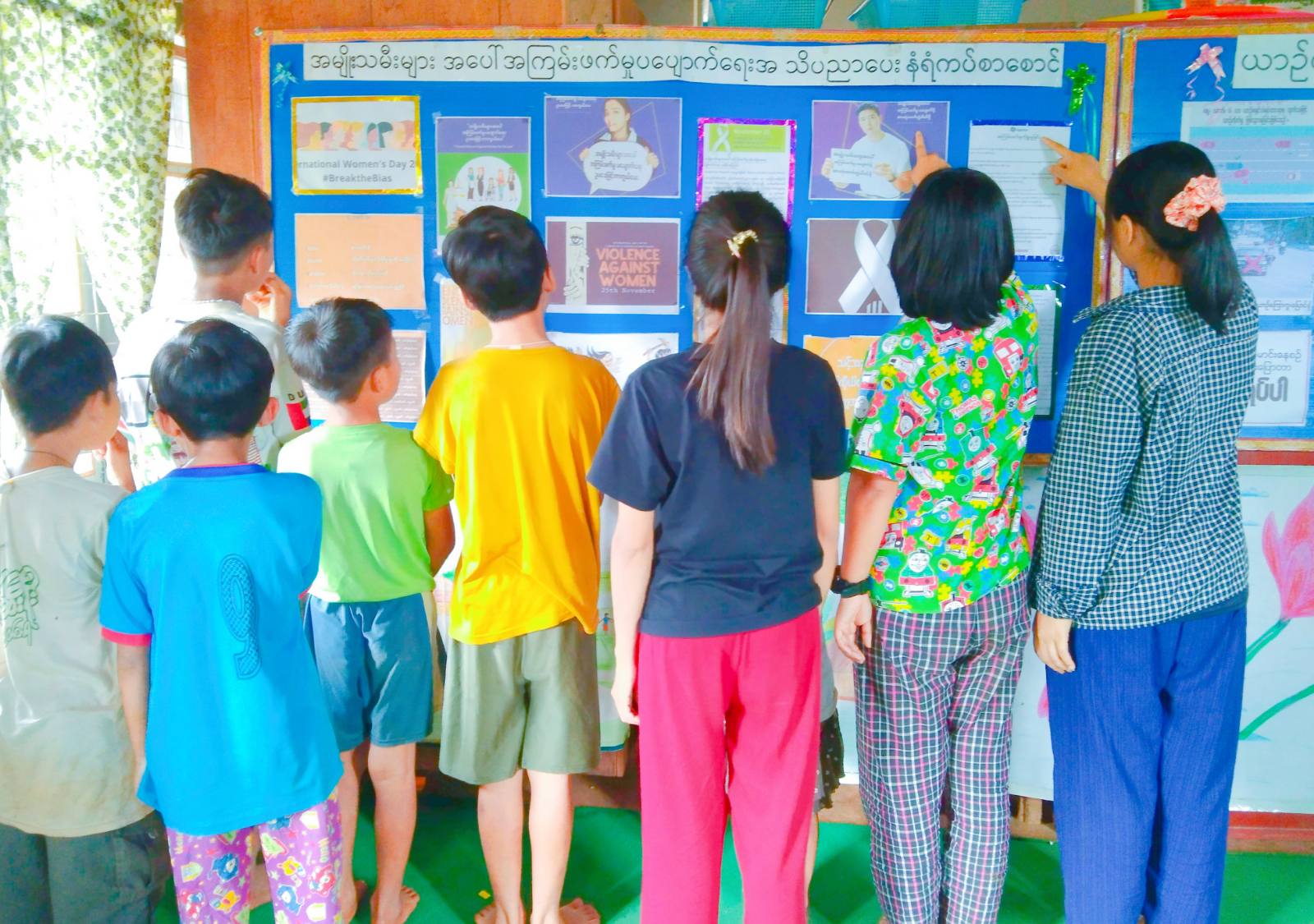 အဆိုပါ နံရံကပ်စာစောင်တွင် အမျိုးသမီးများအပေါ် အကြမ်းဖက်မှုပပျောက်ရေးဥပဒေဖြင့် ကာကွယ်ပေး၊ အကြမ်းဖက်မှုကို ရှုံ့ချခြင်း၊ အမျိုးသမီးများအပေါ် အကြမ်းဖက်ခြင်းသည် ပြစ်မှုကျူးလွန်ခြင်း၊ လူ့အခွင့်အရေးချိုးဖောက်ခြင်း၊ အမျိုးသမီးများအပေါ် အကြမ်းဖက်မှု ရပ်တန့်ရေးနေ့ ဖြစ်ပေါ်လာပုံ စသည့် အမျိုးသမီးများအပေါ် အကြမ်းဖက်မှုပပျောက်ရေးနှင့် ပတ်သက်သော အကြောင်းအရာများပါရှိသည့် အသိပညာပေးနံရံကပ်စာစောင်ကို ပြသဆောင်ရွက်ထားရာ ကျောင်းသား/ကျောင်းသူများနှင့် ဒေသနေပြည်သူများက ကြည့်ရှုလေ့လာမှတ်သားခဲ့ကြကြောင်း သိရသည်။