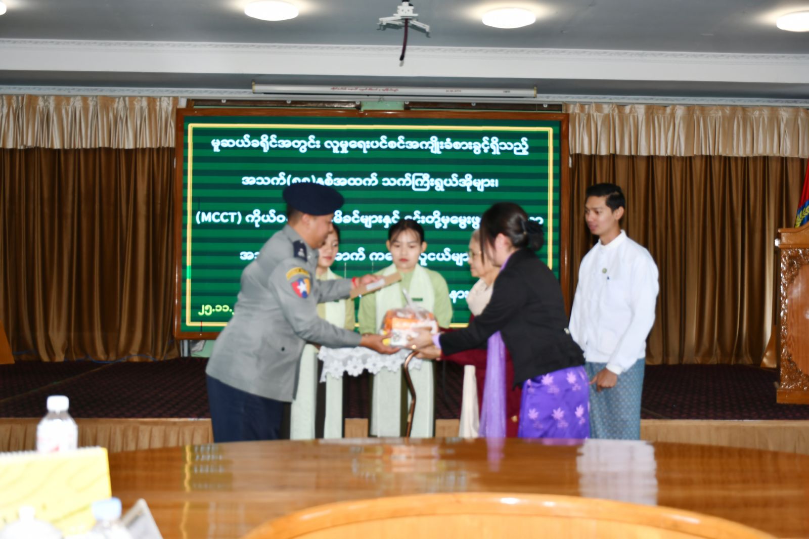 ထို့နောက် လူမှုရေးပင်စင် အကျိုးခံစားခွင့်ရှိသည့် အသက်(၈၅)နှစ်အထက် သက်ကြီးရွယ်အို (၃၉)ဦးအား တာဝန်ရှိသူများက ငွေကျပ် (၃၀၀၀၀) စီနှင့် အာဟာရရှိမည့် အစားအသောက်များကို အသီး သီးထောက်ပံ့ပေးအပ်ခဲ့ကြပြီး (MCCT) ကိုယ်ဝန်ဆောင် မိခင်များနှင့် ၎င်းတို့မှ မွေးဖွားလာသည့် အသက်(၂)နှစ်အောက် ကလေးသူငယ် (၄၉)ဦးကို တာဝန်ရှိသူများက ငွေကျပ် (၃၀၀၀၀)စီအား ထောက်ပံ့ပေးအပ်ခဲ့ကြောင်းနှင့် ထောက်ပံ့ငွေရရှိသည့် သက်ကြီးရွယ်အိုများနှင့် ကိုယ်ဝန်ဆောင်မိခင်များကိုယ်စား အဘွား ဒေါ်အောင်မေက ကျေးဇူးတင်စကား ပြန်လည်ပြောကြားခဲ့ကြောင်း သိရသည်။