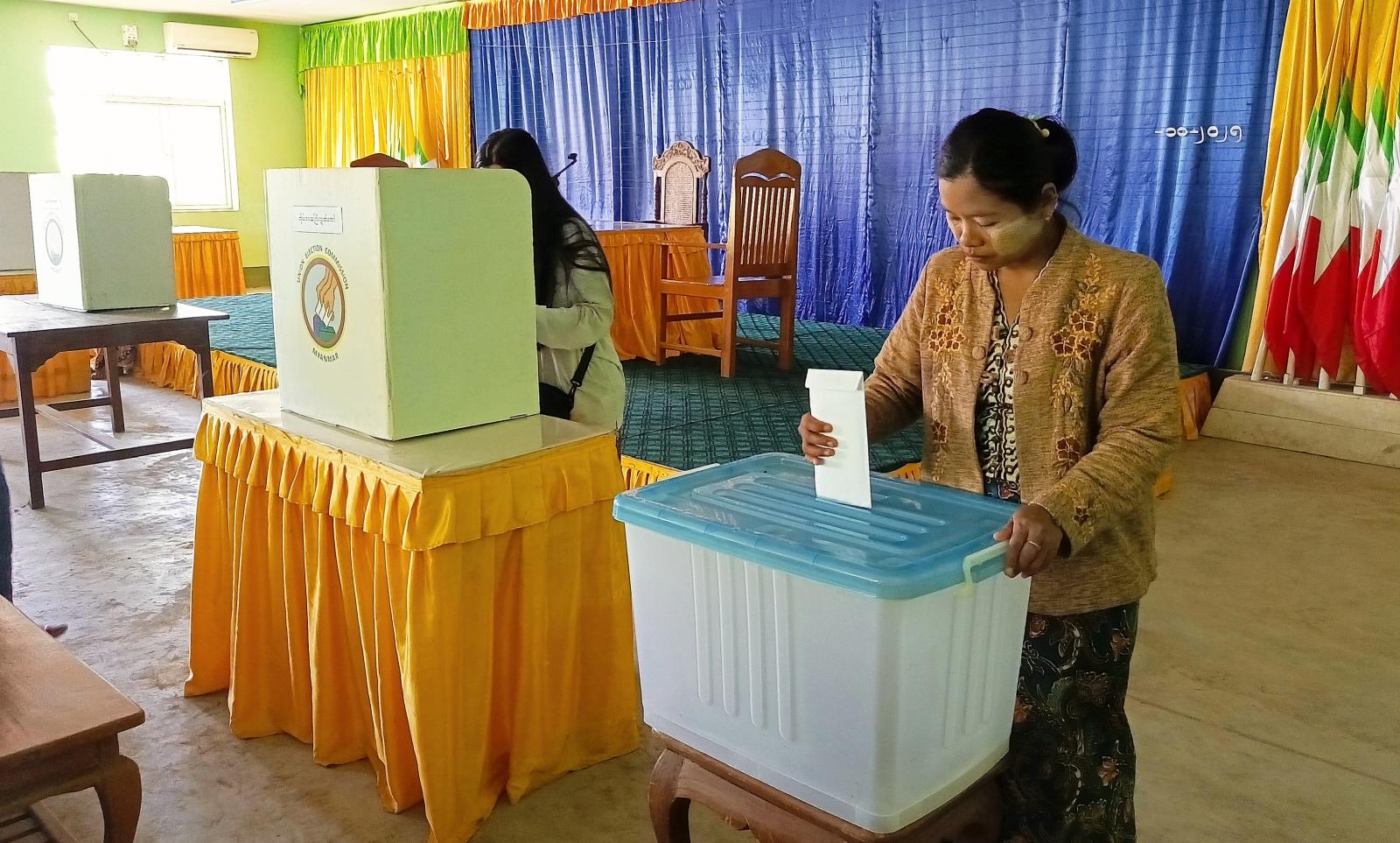 ကြိုတင်ဆန္ဒမဲပေးခြင်းကို မြို့နယ်စီမံခန့်ခွဲရေးနှင့် အုပ်ချုပ်ရေးကော်မတီဥက္ကဋ္ဌ ဦးမျိုးတင့်ထူးနှင့် အဖွဲ့ဝင်များ၊ မြို့နယ်ရွေးကောက်ပွဲကော်မရှင်အဖွဲ့ခွဲဥက္ကဋ္ဌနှင့် အဖွဲ့ဝင်များ စီစဉ်ဆောင်ရွက်ပေးခဲ့ရာ သက်ဆိုင်ရာနိုင်ငံရေးပါတီများမှ ပါတီကိုယ်စားလှယ်များရှေ့တွင် ယာယီနေရပ်စွန့်ခွာနေရသူပြည်သူများက လွတ်လပ်စွာ ကြိုတင်ဆန္ဒမဲပေးခြင်းပြုလုပ်ခဲ့ကြောင်း သိရသည်။