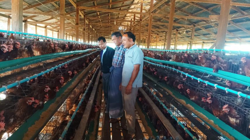 ရှမ်းပြည်နယ်(မြောက်ပိုင်း)၊ နောင်ချိုမြို့နယ် စီမံခန့်ခွဲရေးနှင့်အုပ်ချုပ်ရေးကော်မတီဥက္ကဋ္ဌ ဦးစည်သူလင်း၊ မြို့နယ်မွေးမြူရေးနှင့်ကုသရေးဦးစီးဌာန လက်ထောက်ညွှန်ကြားရေးမှူး ဒေါက်တာဇော်လွင်နှင့် အဖွဲ့ဝင်များလိုက်ပါလျက် ယမန်နေ့နံနက် ၉ နာရီအချိန်တွင် နောင်ချိုမြို့နယ်အတွင်းရှိ မွေးမြူရေးလုပ်ငန်းများ အရှိန်အဟုန်ဖြင့် ပြန်လည်ဆောင်ရွက်နေပြီဖြစ်သော ဥစားကြက်မွေးမြူရေးခြံများသို့ မြို့နယ်အတွင်း ကြက်ဥစားသုံးမှုဖူလုံစေရုံသာမက ပိုမိုတိုးတက်ထုတ်လုပ်နိုင်ရေးဆောင်ရွက်လျက်ရှိသည့် အခြေအနေများအား ကွင်းဆင်းစစ်ဆေးဆောင်ရွက်ခဲ့ကြောင်း သိရှိရပါသည်။