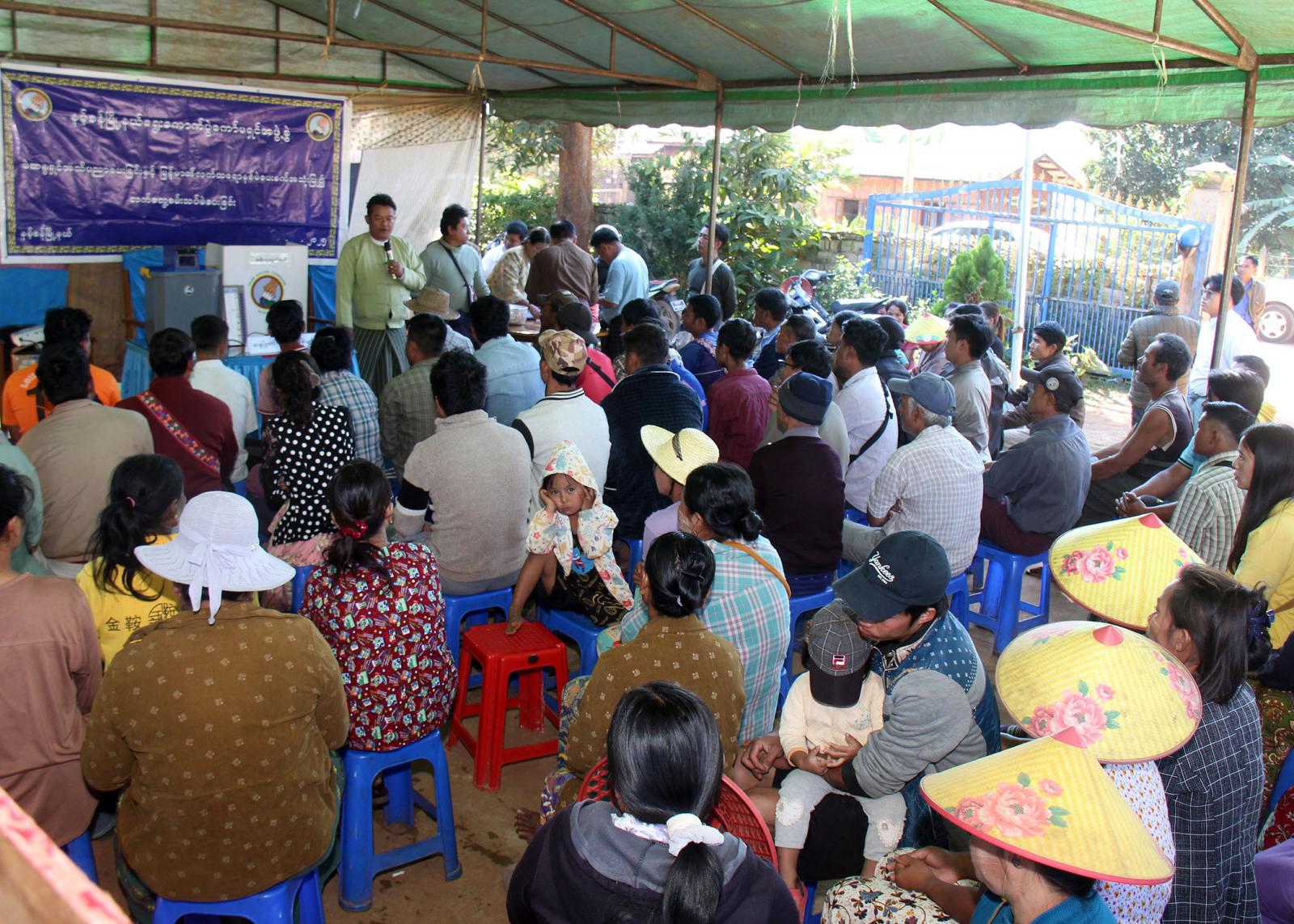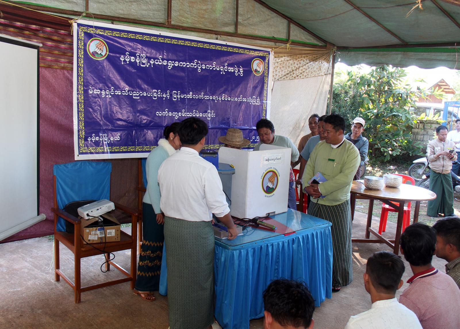 ရှမ်းပြည်နယ်(တောင်ပိုင်း)၊ နမ့်စန်ခရိုင်၊ နမ့်စန်မြို့နယ်၌ မြန်မာအီလက်ထရောနစ်မဲပေးစက်(MEVM)ဆိုင်ရာ အသိပညာပေးခြင်းနှင့် လက်တွေ့စမ်းသပ်မဲပေးခြင်းကို ရပ်ကွက်နှင့်ကျေးရွာများတွင် ကွင်းဆင်းဆောင်ရွက်လျက်ရှိရာ ယမန်နေ့ ညနေ ၂ နာရီက အမှတ်(၅)ရပ်ကွက် ရပ်ကွက်အုပ်ချုပ်ရေးမှူးရုံးဝင်းအတွင်းတွင် ဆောင်ရွက်ခဲ့သည်။