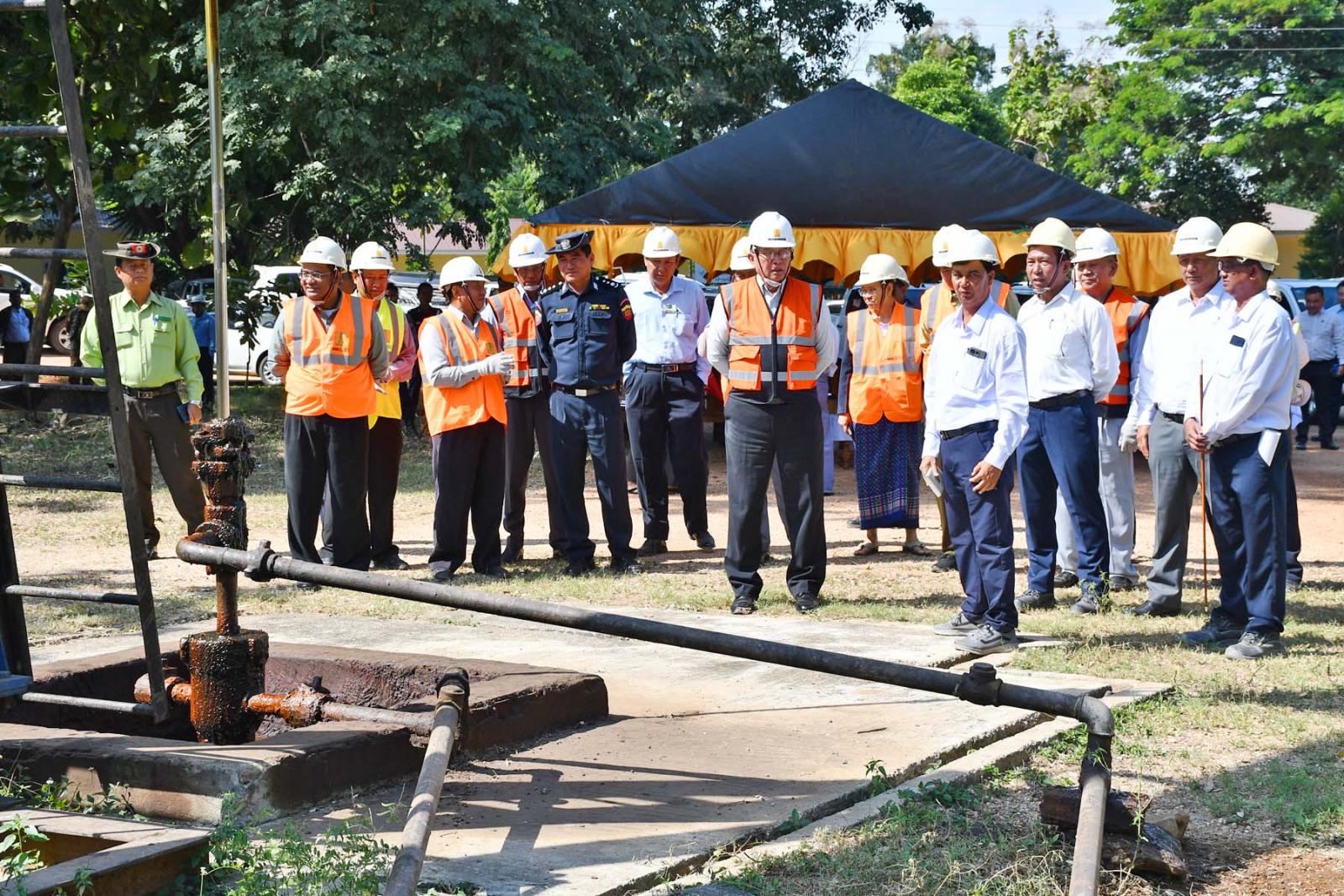 မကွေးတိုင်းဒေသကြီး၊ မင်းဘူးခရိုင်၊ မင်းဘူး(စကု)မြို့နယ်၊ မန်းရေနံမြေဧရိယာရှိ စွမ်းအင်ဝန်ကြီးဌာန၊ မြန်မာ့ရေနံနှင့်သဘာဝဓာတ်ငွေ့လုပ်ငန်း၊ မန်းရေနံမြေ၏လုပ်ငန်းများ လည်ပတ်ဆောင်ရွက်နေမှု၊ ရေနံနှင့်သဘာဝဓာတ်ငွေ့များ နေ့စဉ်ထုတ်လုပ်နေမှုလုပ်ငန်းခွင်အား မကွေးတိုင်းဒေသကြီး ဝန်ကြီးချုပ် ဦးတင့်လွင်နှင့်အတူ တိုင်းဒေသကြီးအစိုးရအဖွဲ့ဝင် ဝန်ကြီးများ၊ တိုင်းဒေသကြီး၊ ခရိုင်၊ မြို့နယ်အဆင့် ဌာနဆိုင်ရာတာဝန်ရှိသူများက နိုဝင်ဘာ ၂၆ ရက် နံနက်ပိုင်းက သွားရောက် ကွင်းဆင်းကြည့်ရှုစစ်ဆေးသည်။