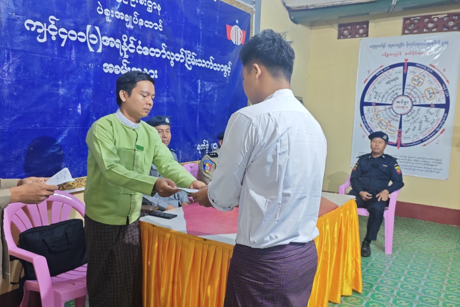 အမျိုးသားကာကွယ်ရေးနှင့်လုံခြုံရေးကောင်စီသည် ပြည်သူလူထုတစ်ရပ်လုံးက လိုလားတောင့်တသည့် ပါတီစုံဒီမိုကရေစီစနစ်ကို အောင်မြင်စွာလျှောက်လှမ်းနိုင်ရေးအတွက် အဓိကထားဆောင်ရွက်လျက်ရှိသည့် အားလျော်စွာ ပြည်သူလူထုပူးပေါင်းဆောင်ရွက်မှုဖြင့် အကောင်အထည်ဖော်ဆောင်ရွက်နိုင်ရေး ဦးတည်ချက်ချမှတ် ဆောင်ရွက်လျက်ရှိပြီး မကြာမီကျင်းပတော့မည့် ပါတီစုံဒီမိုကရေစီ အထွေထွေရွေးကောက်ပွဲကြီးတွင် ဆန္ဒမဲပေးပိုင်ခွင့်ရှိသည့် မဲဆန္ဒရှင်ပြည်သူအားလုံး ဆန္ဒမဲပေးပိုင်ခွင့် မဆုံးရှုံးစေရေးနှင့် လွတ်လပ်မျှတစွာ ဆန္ဒမဲပေးနိုင်ရေးအတွက် ပြစ်ဒဏ်လွတ်ငြိမ်းခွင့်အမိန့်ဖြင့် ပဲခူးအချုပ်ထောင်မှ အကျဉ်းသား/သူ(၁၉)ဦးအား ယနေ့နံနက်ပိုင်းက လွှတ်ပေးခဲ့သည်။