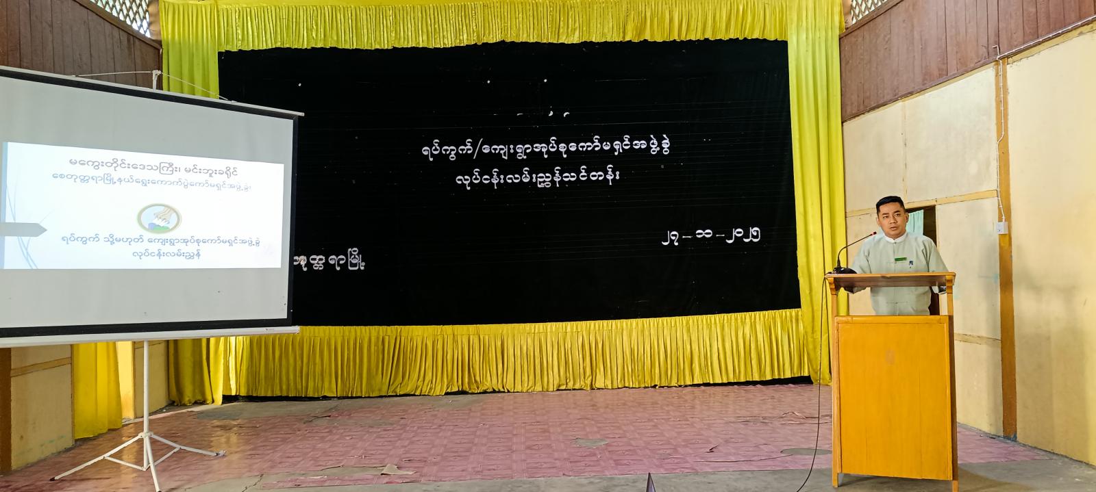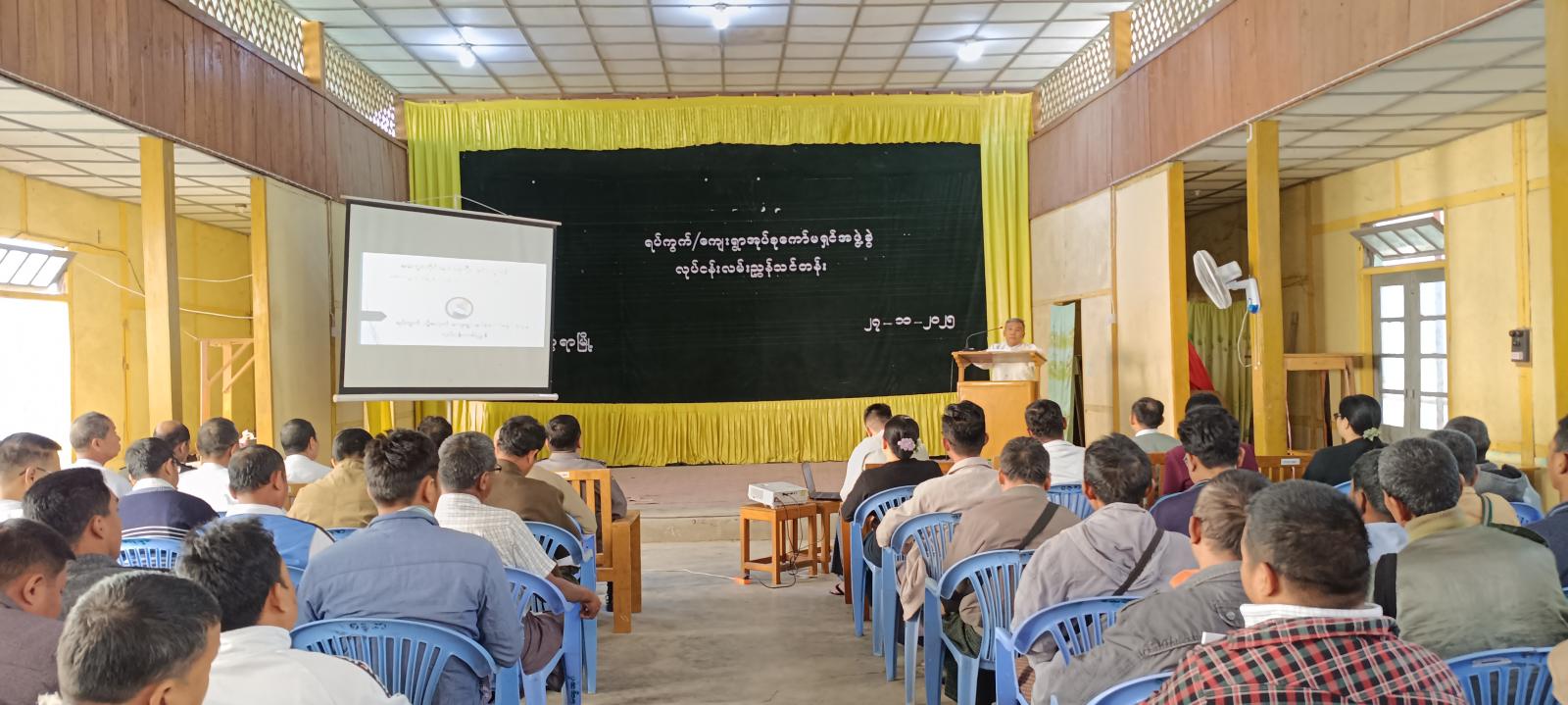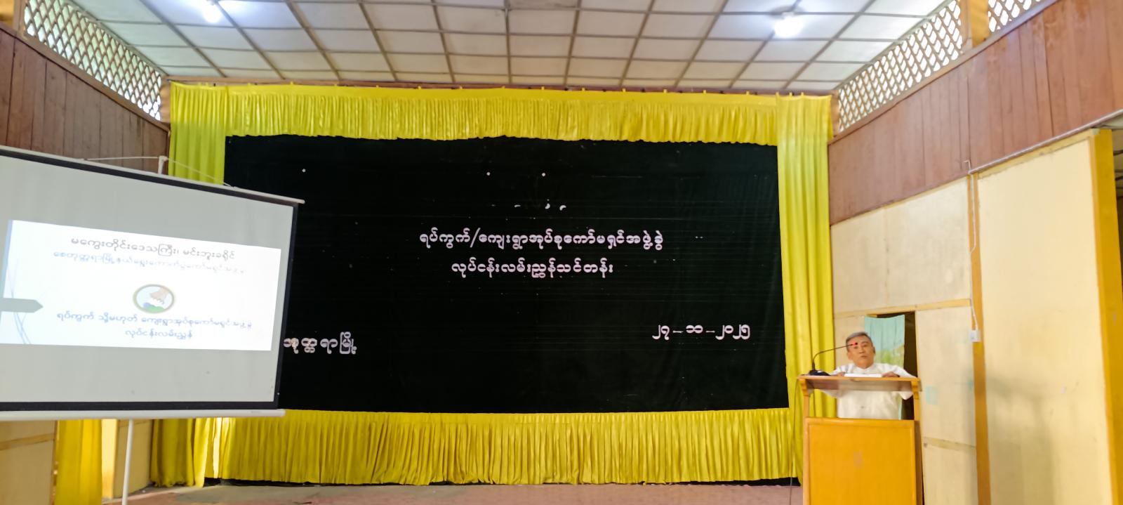ဦးစွာ မြို့နယ်စီမံခန့်ခွဲရေးနှင့်အုပ်ချုပ်ရေးကော်မတီဥက္ကဋ္ဌ ဦးဟိန်းထက်အောင်က အမှာစကားပြောကြားပြီး မြို့နယ်ရွေးကောက်ပွဲကော်မရှင်အဖွဲ့ခွဲဥက္ကဋ္ဌ ဦးလွန်းဆောင်က ရပ်ကွက်၊ ကျေးရွာလုပ်ငန်း လမ်းညွှန်သင်တန်းဖွင့်လှစ်ရခြင်း၏ရည်ရွယ်ချက်၊ ရပ်ကွက်၊ ကျေးရွာကော်မရှင်အဖွဲ့ခွဲ လုပ်ငန်းလမ်းညွှန်ချက်များ၊ ရပ်၊ ကျေးကော်မရှင်အဖွဲ့ခွဲ၏ တာဝန်နှင့်လုပ်ပိုင်ခွင့်များ၊ လိုက်နာစောင့်ထိန်းရမည့်ကျင့်ဝတ်များ၊ ရွေးကောက်ပွဲမကျင်းပမီ၊ ကျင်းပဆောင်ရွက်မည့်နေ့ရက်တို့တွင် ဆောင်ရွက်ကြရမည့်လုပ်ငန်းများအကြောင်းတို့ကို ရှင်းလင်းဆွေးနွေးပြောကြားသည်။