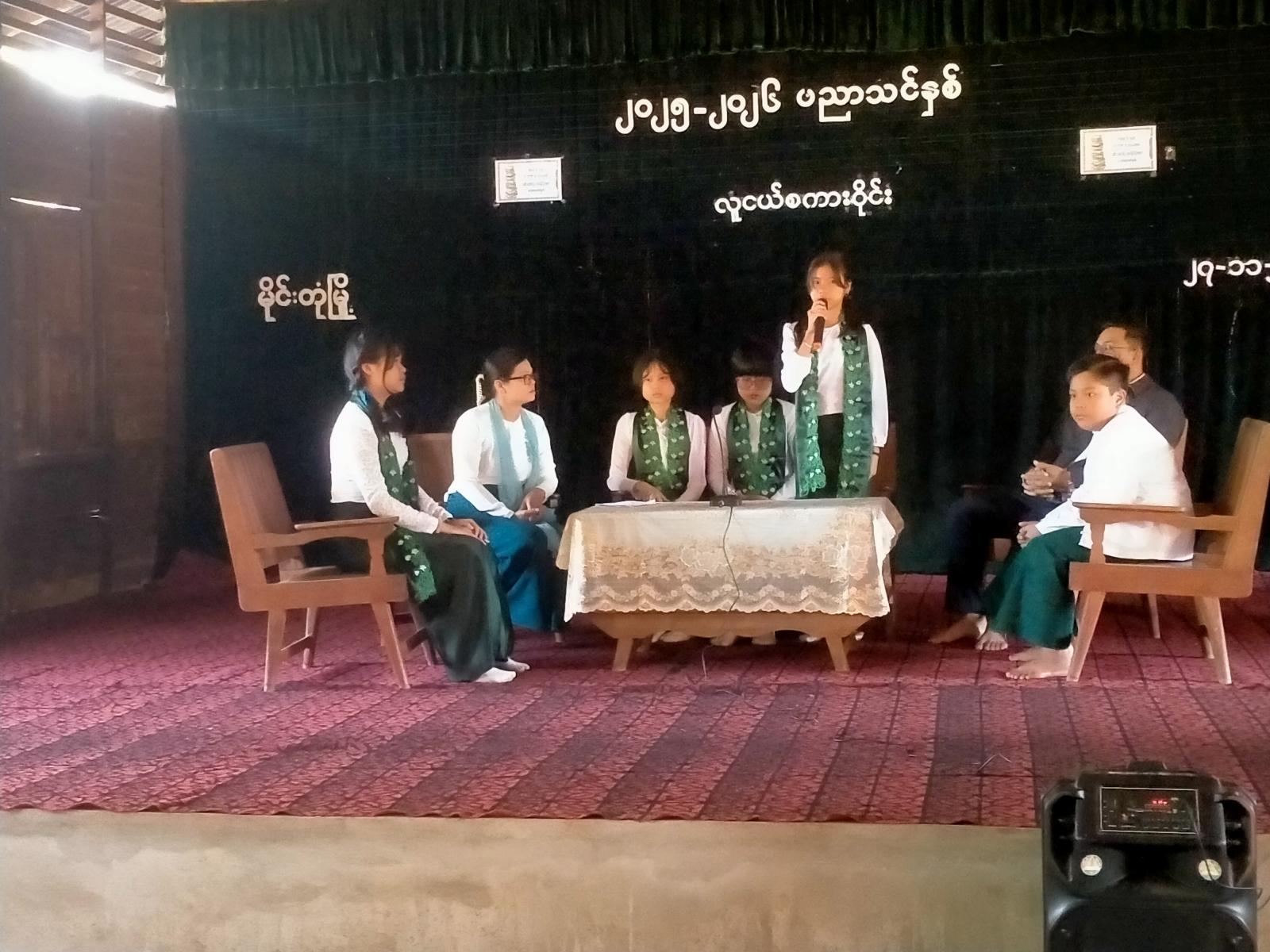 ဆက်လက်၍ အားကစာနှင့်ကာယပညာဦးစီးဌာနမှ ဦးဇေယျာသန်းဝင်းက ဗလငါးတန်နှင့်ပတ်သက်ပြီး အကျယ်တစ်ဝန်း ရှင်းလင်းပြီးနောက် လူငယ်စကားဝိုင်း ဆွေးနွေးပွဲကို ကျင်းပရာ Grade-8 ကျောင်းသား မောင်နေ့သစ်အောင်ကအစာစားခြင်းဟာ ကျန်းမာရေးအတွက် အရေးကြီးပုံ ခေါင်းစဉ်ဖြင့်လည်းကောင်း၊ Grade-8 ကျောင်းသူမဝင့်လွှာဖြူက ကျန်းမာရေးသည်လူသားတွေအတွက် အရေးကြီးပုံများ ခေါင်းစဉ်ဖြင့်လည်းကောင်း Grade-8 ကျောင်းသူ မဆုမြတ်ပြည့်စုံက လေ့ကျင့်ခန်းလုပ်ခြင်း၏အကျိုးကျေးဇူးများ မအိမ့်မြင့်မိုရ်မှူးက ကျန်းမာရေးနှင့်အားကစားခေါင်းစဉ်ဖြင့်လည်းကောင်း၊ Grade-8 ကျောင်းသူ မမြတ်ဖူးအိမ်က ကျန်းမာရေးအတွက် လူတို့၏ အပြုအမူခေါင်းစဉ်ဖြင့်လည်းကောင်း၊ အသီးသီးဆွေးနွေးခဲ့ကြရာ လူငယ်စကားဝိုင်းဆွေးနွေးပွဲသို့ တက်ရောက်လာသော ကျောင်းသား/ ကျောင်းသူများထဲမှ မခင်ချမ်းမြေ့ဇော်၊ မပွင့်နဒီသွယ်၊ မခေမီကို၊ မောင်ဟိန်ဇော်အောင်၊ မောင်ဝေလင်းထွေး၊ မောင်လှိုင်လင်းအောင်နှင့် မငြိမ်းငြိမ်းစိုးတို့က သိရှိလိုသည်များ မေးမြန်းကြရာ လူငယ်စကားဝိုင်းတွင် ဦးဆောင်ဆွေးနွေးသူ ကျောင်းသား/ ကျောင်းသူများနှင့် တာဝန်ရှိသူများက မေးခွန်းများကို ပြန်လည်ဖြေကြားပေးခဲ့ကြကြောင်း သိရသည်။