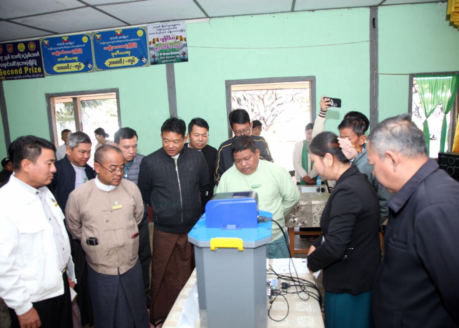 ဦးစွာ ခရိုင်စီမံခန့်ခွဲရေးနှင့် အုပ်ချုပ်ရေးကော်မတီဥက္ကဋ္ဌ ဦးသက်နိုင်က မဲရုံမှူး၊ ဒုမဲရုံမှူးများအား ရွေးကောက်ပွဲဆိုင်ရာ ပို့ချခြင်းသင်တန်းဖွင့်လှစ်ခြင်းနှင့်ပတ်သက်၍ အဖွင့်အမှာစကား ပြောကြားခဲ့သည်။ ထို့နောက် ခရိုင်နှင့်မြို့နယ်အဆင့်ဌာနဆိုင်ရာ အကြီးအကဲများက မြန်မာအီလက်ထရောနစ် မဲပေးစက်(MEVM)များအား ကြည့်ရှု၍ စမ်းသပ်မဲပေးခြင်းများ လက်တွေ့လုပ်ဆောင်ခဲ့ကြသည်။