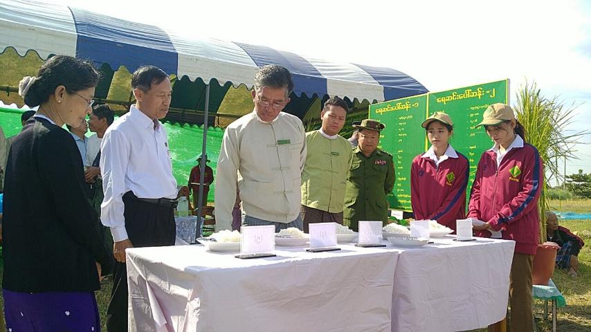 ထို့နောက် ရိတ်သိမ်းချွေလှေ့စက်ဖြင့် ရေဆင်းပေါ်ဆန်း (၁) ၊ (၂) စပါးမျိုးများ ရိတ်သိမ်းနေမှုအား ကွင်းဆင်းကြည့်ရှုအားပေးခဲ့ရာ ရေဆင်းပေါ်ဆန်း (၁) (၈၀.၂၅) တင်းနှင့် ရေဆင်းပေါ်ဆန်း (၂) (၇၉.၁၂) တင်းထွက်ရှိခဲ့ပြီး ပေါ်ဆန်းစပါးမျိုးများ၏ စားသုံးမှုအရည်အသွေးအား အကဲဖြတ်မှတ်တမ်းတင်ခြင်းများ ပြုလုပ်ဆောင်ရွက်ခဲ့သည်။