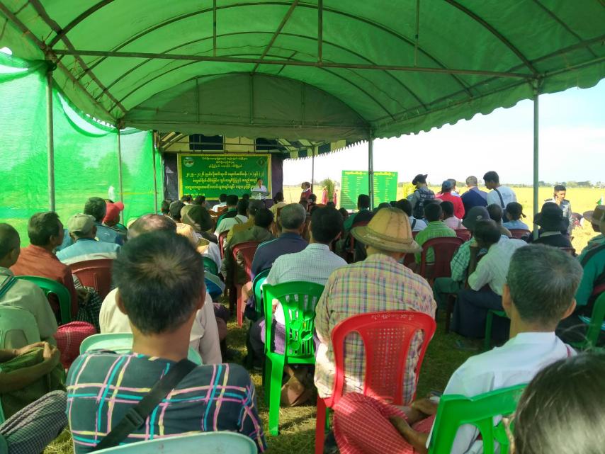 ဆက်လက်၍ ပြည်နယ်စိုက်ပျိုးရေးဦးစီးဌာနမှ ဒုတိယပြည်နယ်ဦးစီးမှူး ဦးကျော်ကျော်လှိုင်က ကွင်းသရုပ်ပြပွဲနှင့် တောင်သူဆွေးနွေးပွဲ ဆောင်ရွက်ရခြင်းနှင့်ပတ်သတ်၍ ရှင်းလင်းဆွေးနွေးခဲ့သည်။