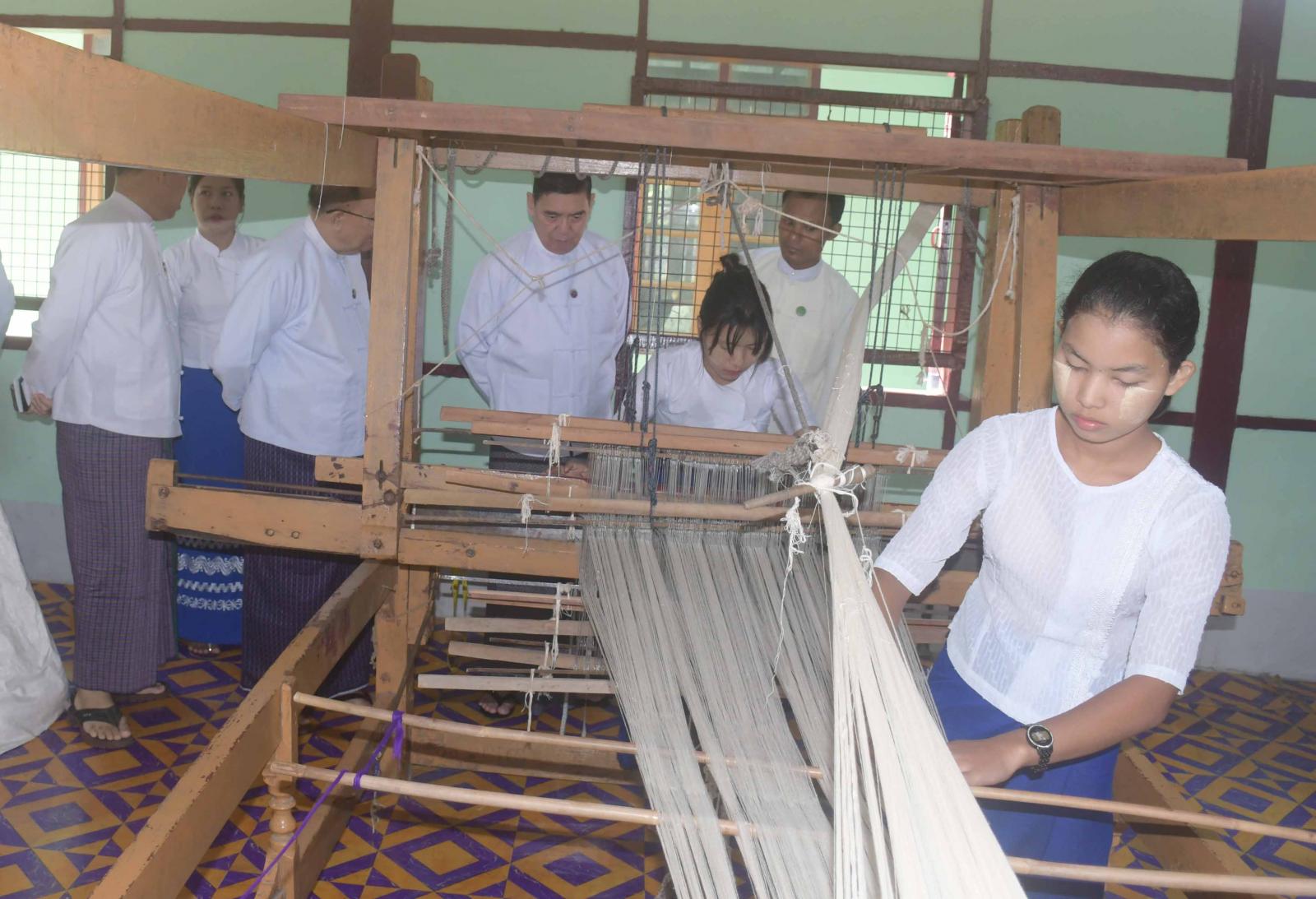 ဦးစွာ ပြည်နယ်ဝန်ကြီးချုပ်နှင့်အဖွဲ့သည် သင်တန်းသူများအား လက်ရက်ကန်း လက်တွေ့ သင်ကြားပို့ချနေမှုကို လှည့်လည်ကြည့်ရှုအားပေးကြရာ အသေးစားစက်မှုလုပ်ငန်းဦးစီးဌာန၊ ပြည်နယ်ဦးစီးမှူးနှင့် ရက်ကန်းနှင့်အသက်မွေးပညာသင်တန်းကျောင်း(စစ်တွေ)ကျောင်းအုပ်ကြီး တို့က လိုက်လံရှင်းလင်းတင်ကြပြပြီး ပြည်နယ်လမ်းပန်းဆက်သွယ်ရေးဝန်ကြီးက ဖြည့်စွက်ရှင်းလင်းတင်ပြသည်။ ပြည်နယ်ဝန်ကြီးချုပ်က ရိုးရာရက်ကန်းလုပ်ငန်းများကို စနစ်တကျလုပ်ဆောင်ကာ ရိုးရာအဝတ်အထည်များ ပိုမိုထုတ်လုပ်နိုင်ရေး ဆောင်ရွက်သွားရန်၊ လူငယ်များအလုပ်အကိုင်အခွင့်အလမ်း ပိုမိုရရှိလာနိုင်ရေးအတွက် ရက်ကန်းသင်တန်းများဖွင့်လှစ်ကာ မျိုးဆက်သစ်လူငယ်များကို လက်ဆင့်ကမ်း သင်ကြားပေးသွားကြရန်မှာကြားသည်။
