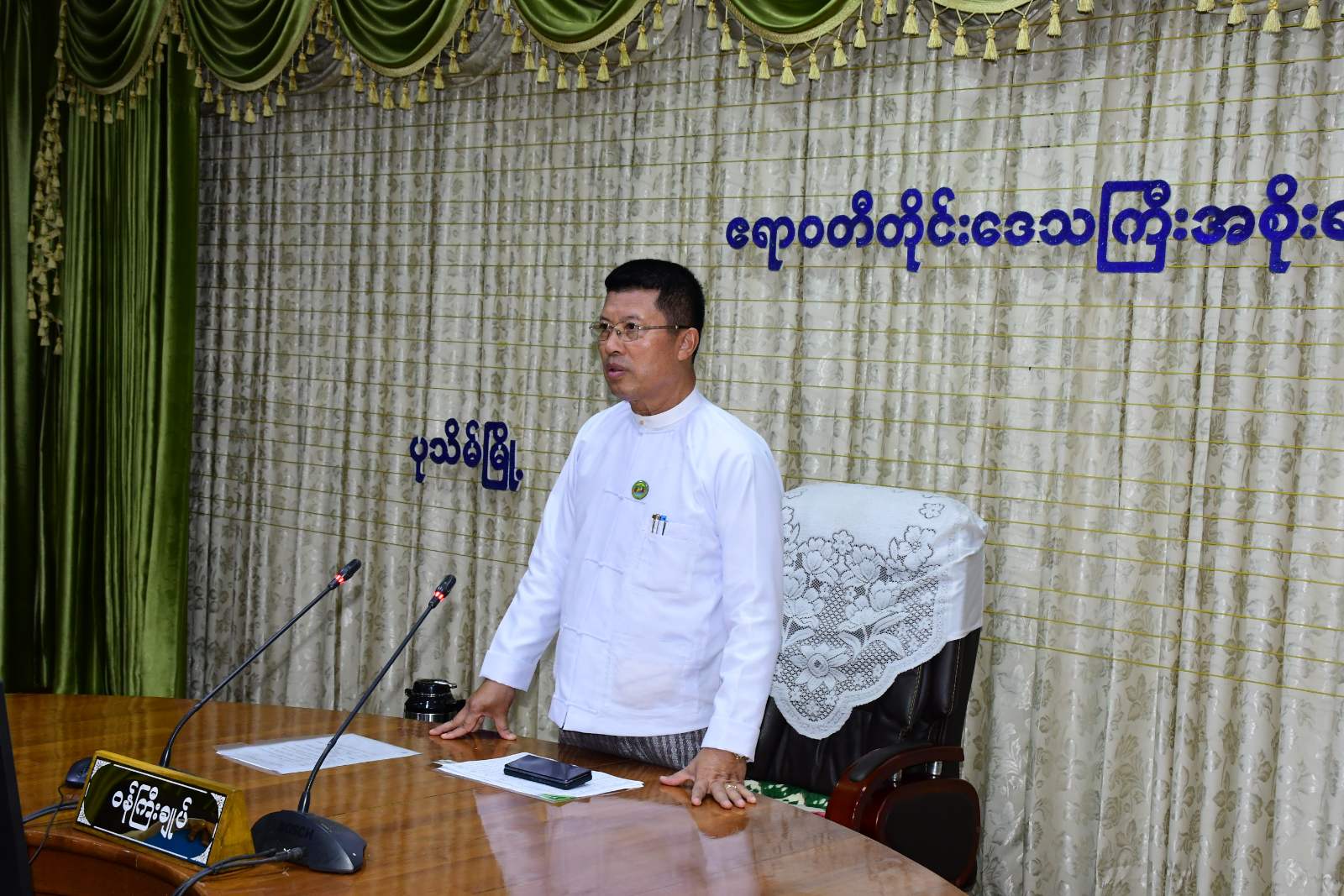 ဦးစွာ တိုင်းဒေသကြီးဝန်ကြီးချုပ်က “မိမိတို့တိုင်းဒေသကြီးအတွင်း အသက်(၁၈)နှစ်ပြည့်ပြီးသူတိုင်း မဲပေးနိုင်ရေး၊ မဲစာရင်းမှန်ကန်ရေးအတွက် အလေးထားဆောင်ရွက်ရန် အစည်းအဝေးပြုလုပ်ရခြင်းဖြစ်ကြောင်း၊ သက်ဆိုင်ရာခရိုင်၊ မြို့နယ်ရွေးကောက်ပွဲကော်မရှင်အဖွဲ့ခွဲများမှ မဲစာရင်းများကပ်ထား ကြေညာရာတွင် မကျန်ရှိစေရေးနှင့် မဲစာရင်းပါရှိစေရေး စောင့်ကြည့်စစ်ဆေးသွားရန်လိုအပ်ကြောင်း၊ အသက်(၁၈)နှစ်ပြည့်ပြီးသူတိုင်း မဲပေးနိုင်ရေးအတွက်လိုအပ်သော နိုင်ငံသားစိစစ်ရေးကတ်ပြားများ အချိန်မီကွင်းဆင်းပြုလုပ်ပေးရန်လိုအပ်ကြောင်း၊ ဒုတိယအကြိမ် မဲစာရင်းများ ကပ်ထားကြေညာရာတွင် ထပ်မံလျှောက်ထားမှုများ၊ ကန့်ကွက်မှုများ၊ ပြင်ဆင်မှုများ ရှိသောကြောင့် မဲစာရင်းမှန်ကန်ရေးအတွက် တာဝန်ရှိသူများက ကြီးကြပ်ဆောင်ရွက်ရန်လိုပါကြောင်း၊ ကျောင်းသား၊ကျောင်းသူများ၊ နေရာရွှေ့ပြောင်းအလုပ်လုပ်ကိုင်သူများ မဲစာရင်းမကျန်စေရေး သက်ဆိုင်ရာတာဝန်ရှိသူများက အလေးထားဆောင်ရွက်ရန်၊ ယာယီတိုက်ပွဲရှောင်များအား နေထိုင်ရာနေရာ၊ မဲစာရင်းပါရှိမှုနှင့် နိုင်ငံသားစိစစ်ရေးကတ်ပြားများကို စိစစ်သွားရန်၊ အကြောင်းအမျိုးမျိုးကြောင့် ခရီးလွန်နေသူများ နေရပ်ပြန်ရောက်ပါက သက်ဆိုင်ရာ ရပ်ကွက်၊ကျေးရွာအုပ်ချုပ်ရေးမှူးရုံးများသို့ သတင်းပေးပို့၍ မဲစာရင်းများပါရှိစေရေးဆောင်ရွက်ကြရန်လိုပါကြောင်း၊ သက်ဆိုင်ရာတာဝန်ရှိသူများမှ မိမိတို့ရပ်ကွက်၊ကျေးရွာများအတွင်း မဲစာရင်းမှန်ကန်ရေးအတွက် ပေါင်းစပ်ညှိနှိုင်းဆွေးနွေးပေးကြရန်” အမှာစကားပြောကြားခဲ့သည်။