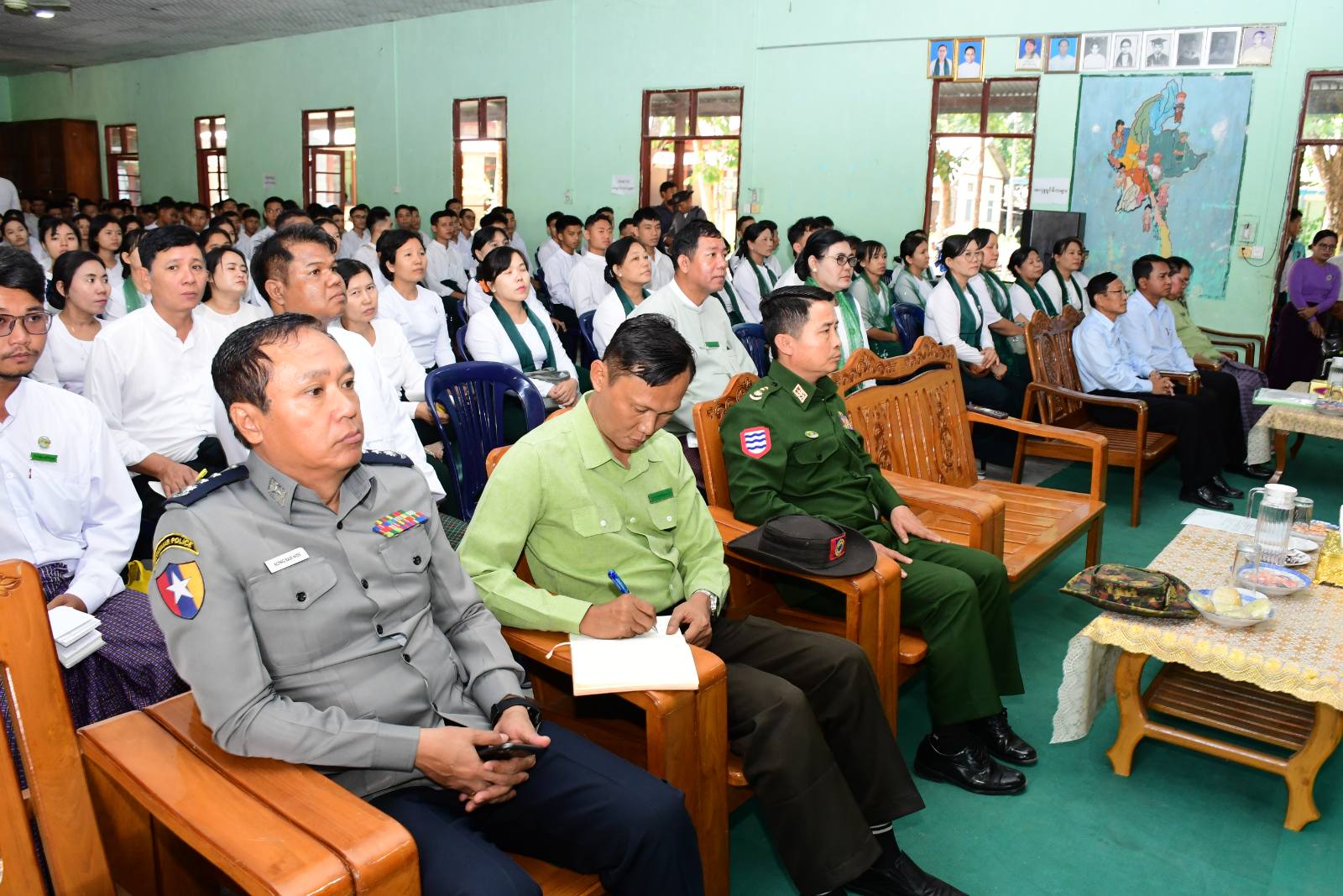 ဧရာဝတီတိုင်းဒေသကြီး၊ ပုသိမ်ခရိုင်၊ တောမြို့နယ်အခြေခံပညာအထက်တန်းကျောင်း၊ နဝရတ်ခန်းမတွင် ၂ဝ၂၆ ခုနှစ် တက္ကသိုလ်ဝင်စာမေးပွဲ အောင်ချက်မြင့်မားရေးအတွက် Grade -12 ကျောင်းသား/သူများနှင့် ဆရာ/မများအား တွေ့ဆုံပွဲအခမ်းအနားကို ယမန်နေ့မွန်းလွဲပိုင်းက ပြုလုပ်ခဲ့ရာ တိုင်းဒေသကြီးဝန်ကြီးချုပ် ဦးတင်မောင်ဝင်း၊ တိုင်းဒေသကြီးဝန်ကြီးများ၊ ဆရာ၊ ဆရာမများနှင့် ကျောင်းသား၊ ကျောင်းသူများ တက်ရောက်ခဲ့ကြသည်။
